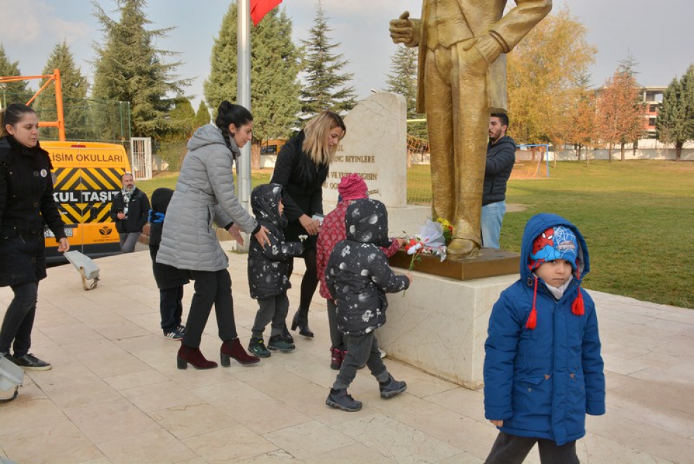 09.05’te saygı duruşu ve İstiklal Marşı ile başlayan anma törenimiz, 9. Sınıf öğrencilerimizin hazırladığı Atatürk Oratoryosuyla ve zeybek gösterisiyle devam etti. Ardından öğrencilerimizin ve öğretmenlerimizin Atatürk büstüne çiçek koymalarıyla son buldu.
