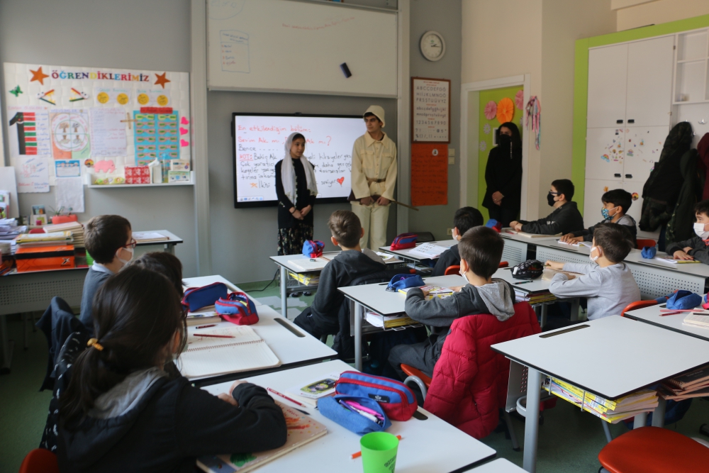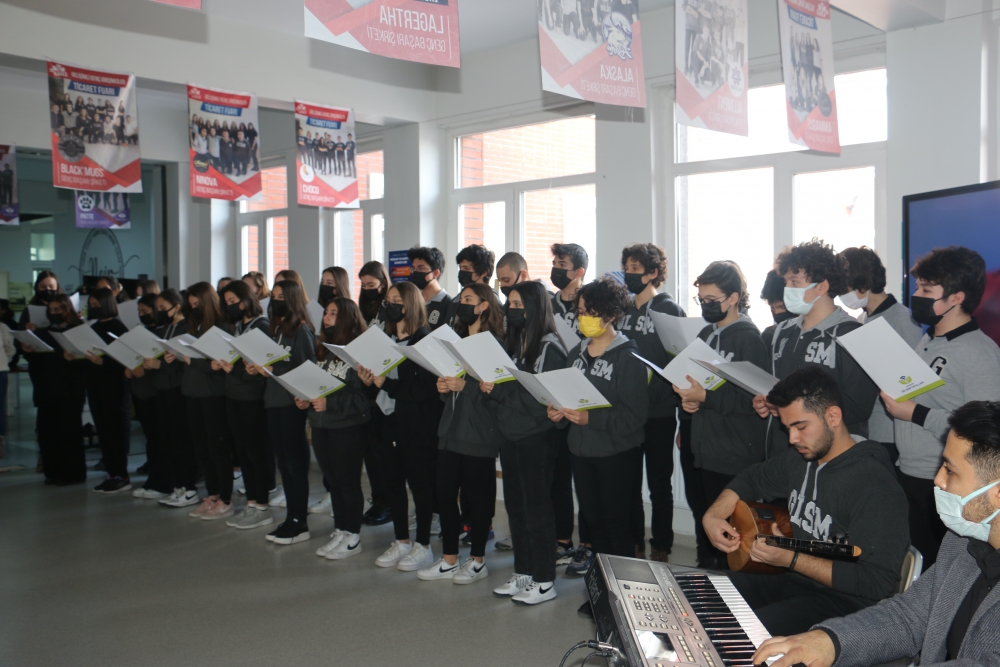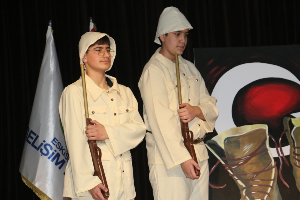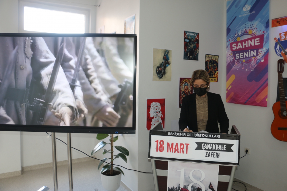 "Çanakkale Şehitleri Anma Günü ve Çanakkale Zaferi" okulumuzun tüm kademelerinde hafta boyunca gerçekleştirilen çeşitli etkinliklerle kutlandı. İlkokul öğrencilerimiz, liseli büyüklerine, liseli öğrencilerimiz de ilkokul ve ortaokuldaki kardeşlerine Çanakkale’de yaşanmış gerçek hikayelerden yola çıkan hikaye anlatımları gerçekleştirdiler. Müzik öğretmenlerimiz önderliğinde 9. Sınıf öğrencilerimizden oluşan koro okulumuzun tüm kademelerinde ve çeşitli alanlarında konserler verdi. Lise öğrencilerimizin Türk Dili ve Edebiyatı Öğretmenlerimiz rehberliğinde oluşturdukları, Tarih Öğretmenimiz Durdu Özen’in anlatımı ile Çanakkale Savaşı sırasında yaşanan olayların anlatıldığı tiyatro izleyenlere oldukça duygusal anlar yaşattı.