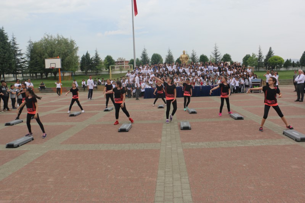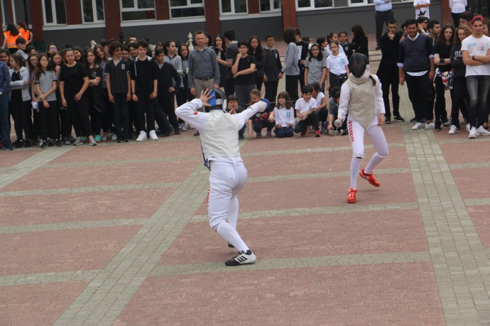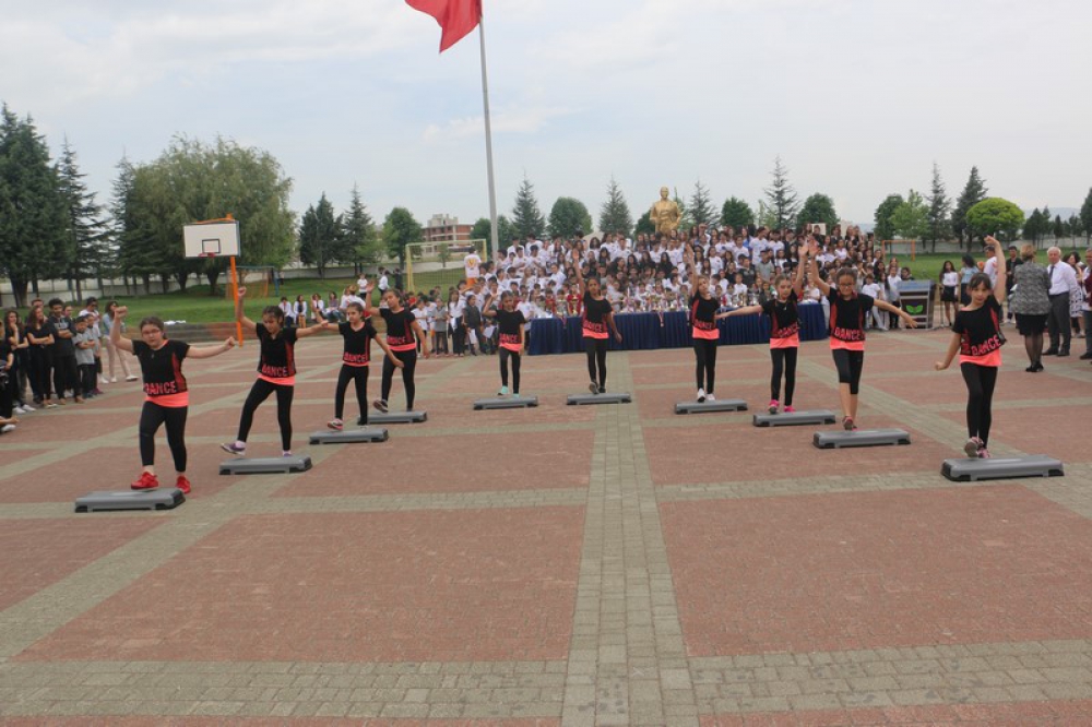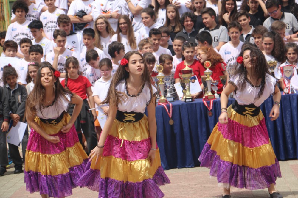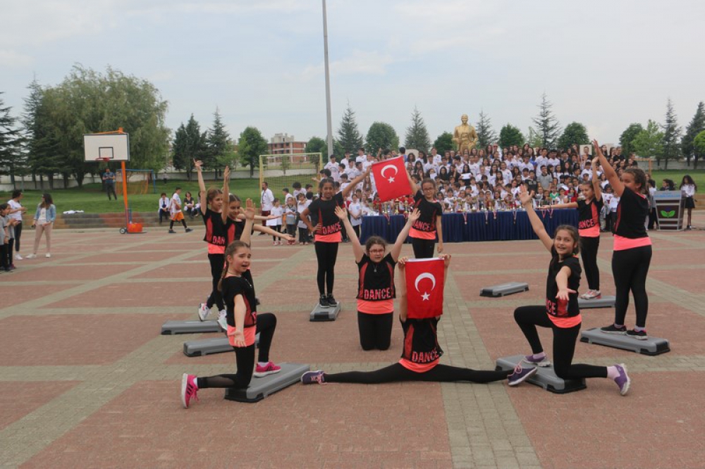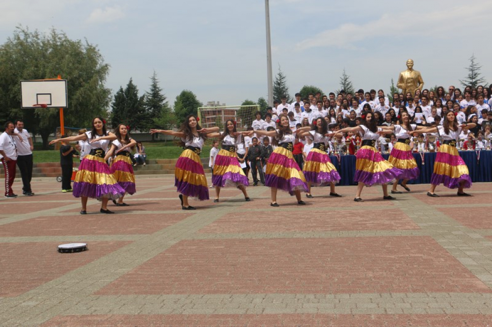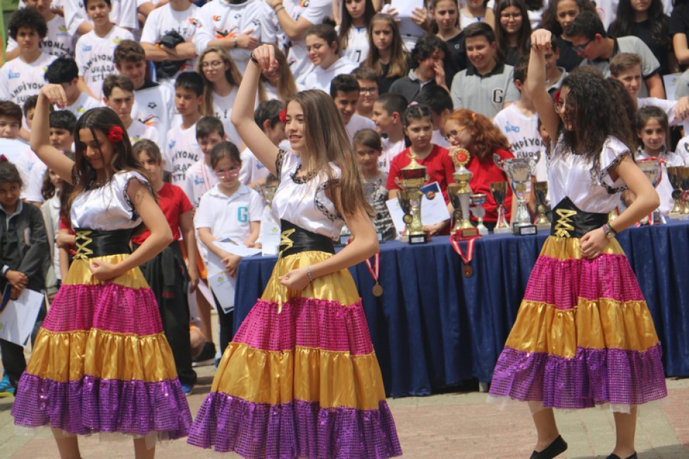 Okul bahçemizde yapılan törende ortaokul ve lise öğrencilerimiz bayram neşesini doyasıya yaşadı. Dans, step ve eskrim takımlarındaki öğrencilerimizin gösterileri kutlamaya renk kattı. Okulumuz öğrencileri adına voleybol takımı oyuncumuz Damla Damarsoy`un yaptığı konuşmanın ardından okulumuzu çeşitli spor dallarında, ulusal ve uluslararası birçok müsabakada temsil eden öğrencilerimize, Beden Eğitimi Öğretmenlerimiz ve spor antrenörlerimiz tarafından teşekkür belgeleri verildi.