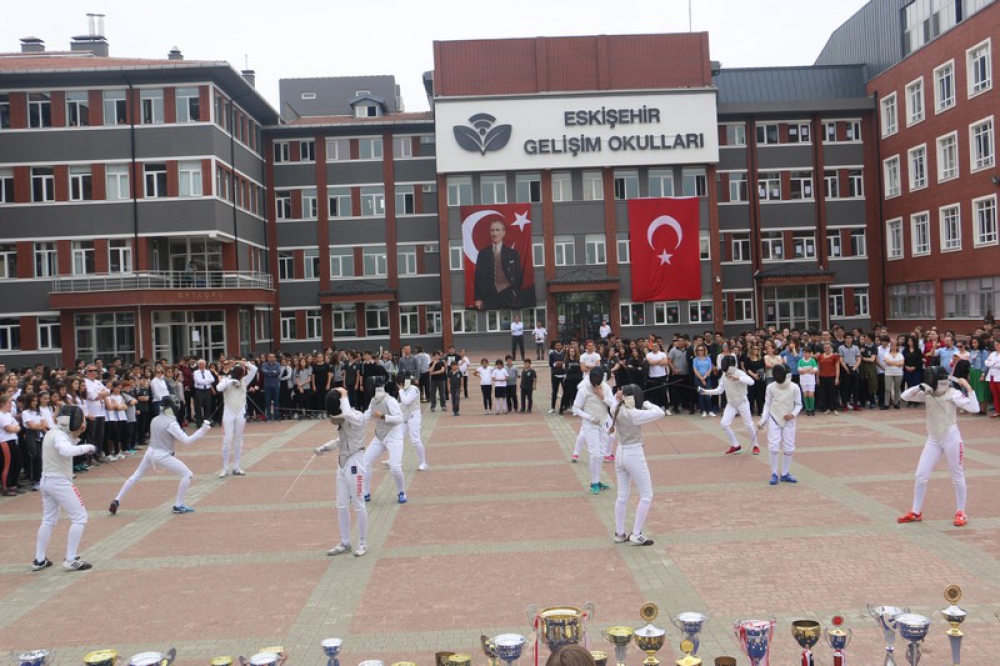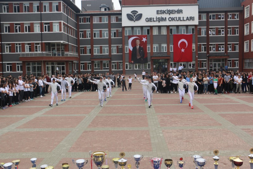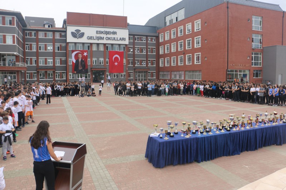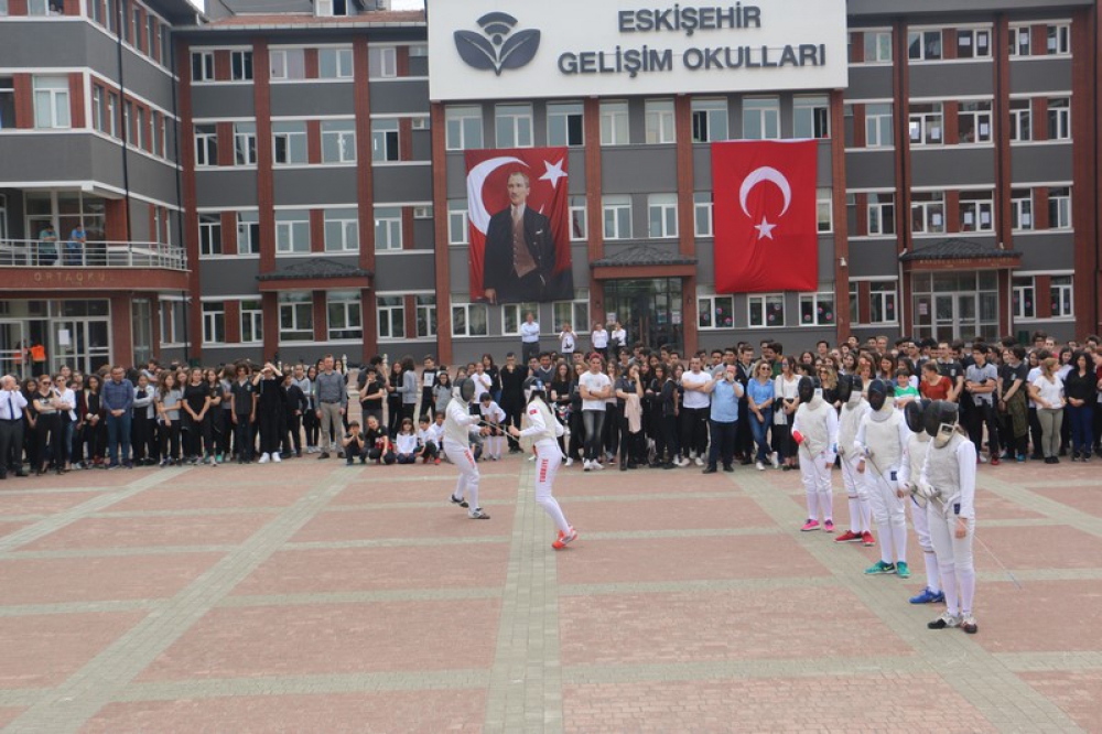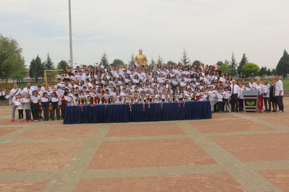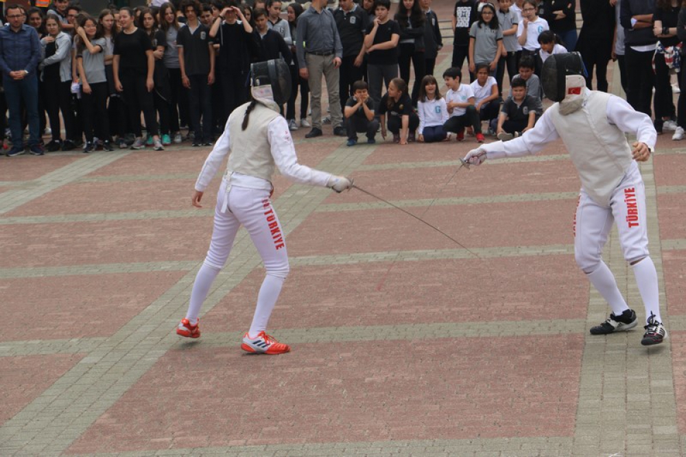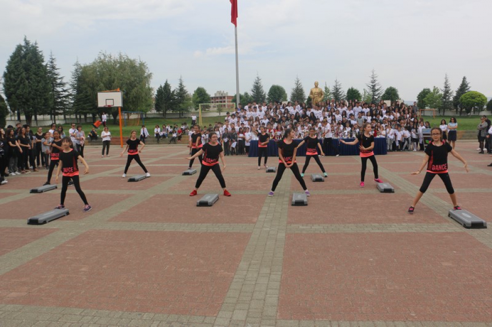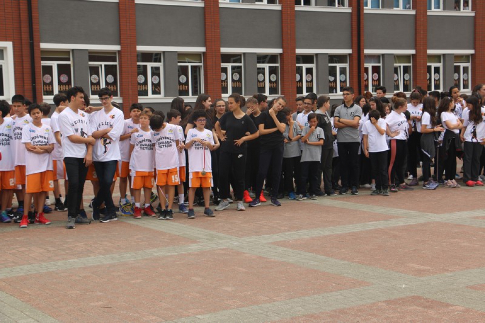 Okul bahçemizde yapılan törende ortaokul ve lise öğrencilerimiz bayram neşesini doyasıya yaşadı. Dans, step ve eskrim takımlarındaki öğrencilerimizin gösterileri kutlamaya renk kattı. Okulumuz öğrencileri adına voleybol takımı oyuncumuz Damla Damarsoy`un yaptığı konuşmanın ardından okulumuzu çeşitli spor dallarında, ulusal ve uluslararası birçok müsabakada temsil eden öğrencilerimize, Beden Eğitimi Öğretmenlerimiz ve spor antrenörlerimiz tarafından teşekkür belgeleri verildi.