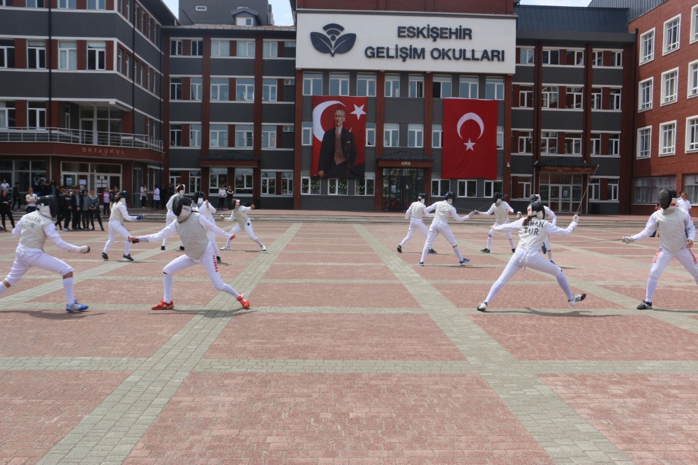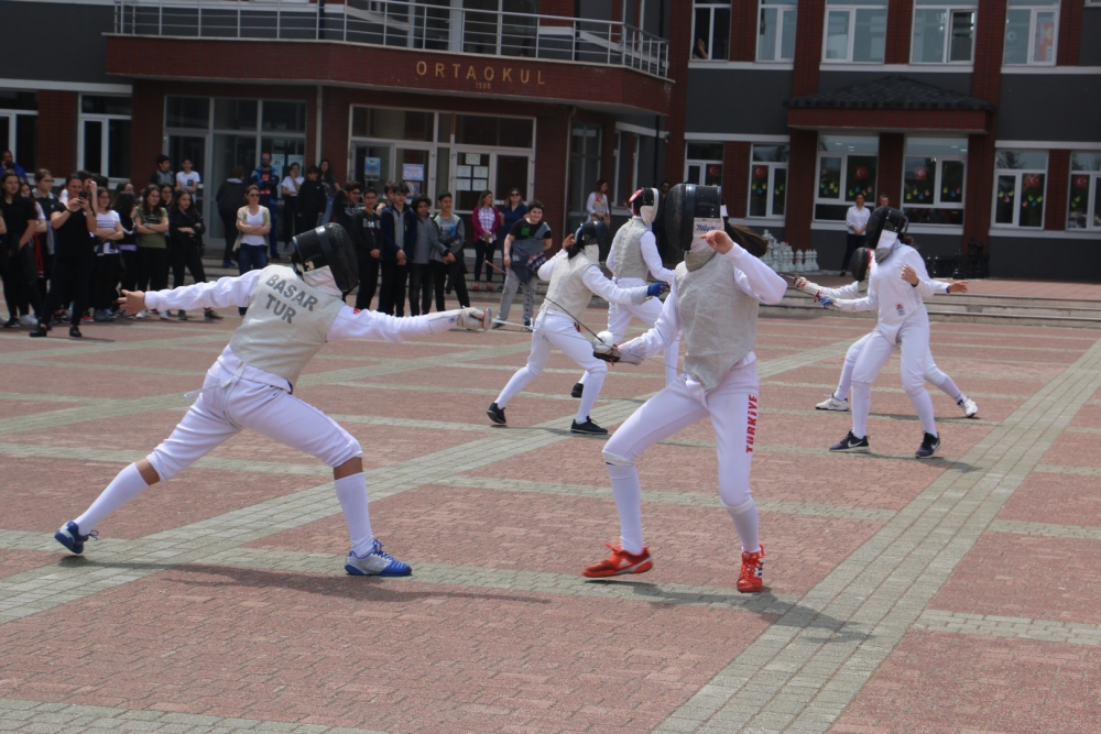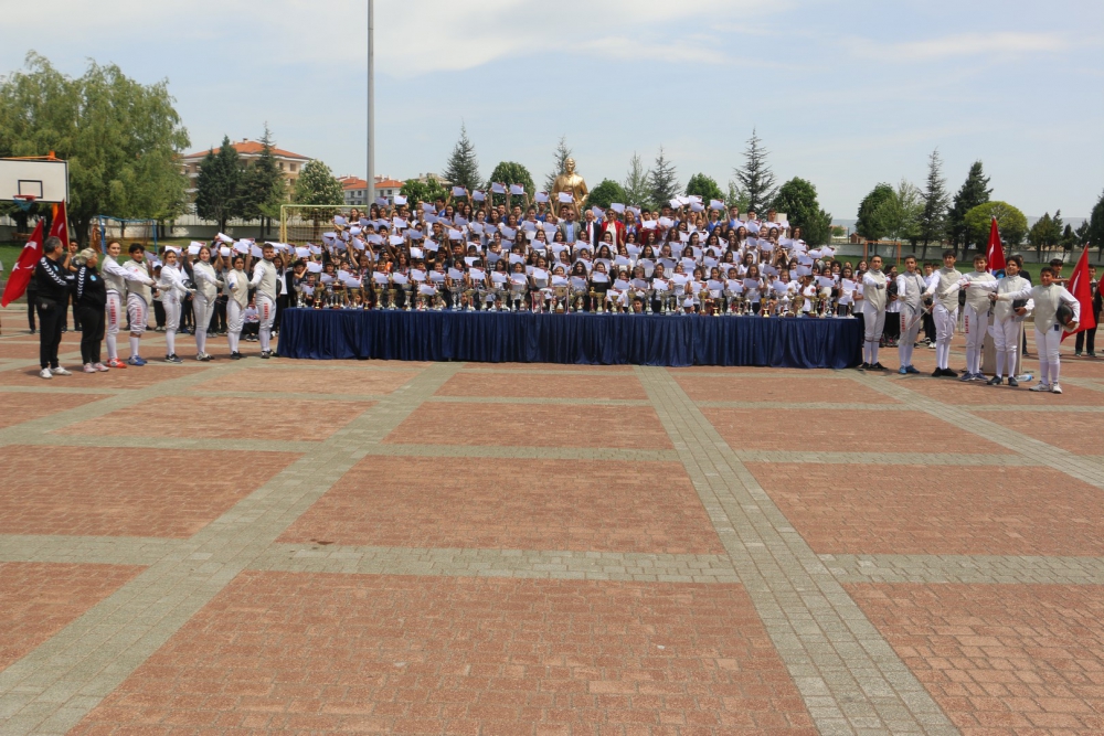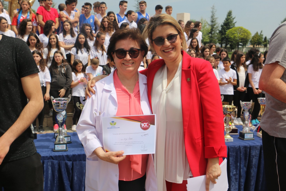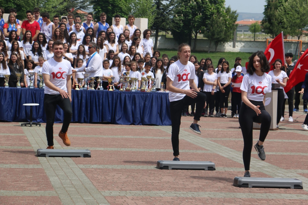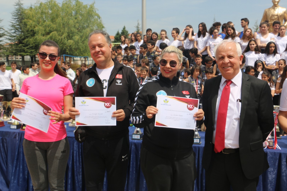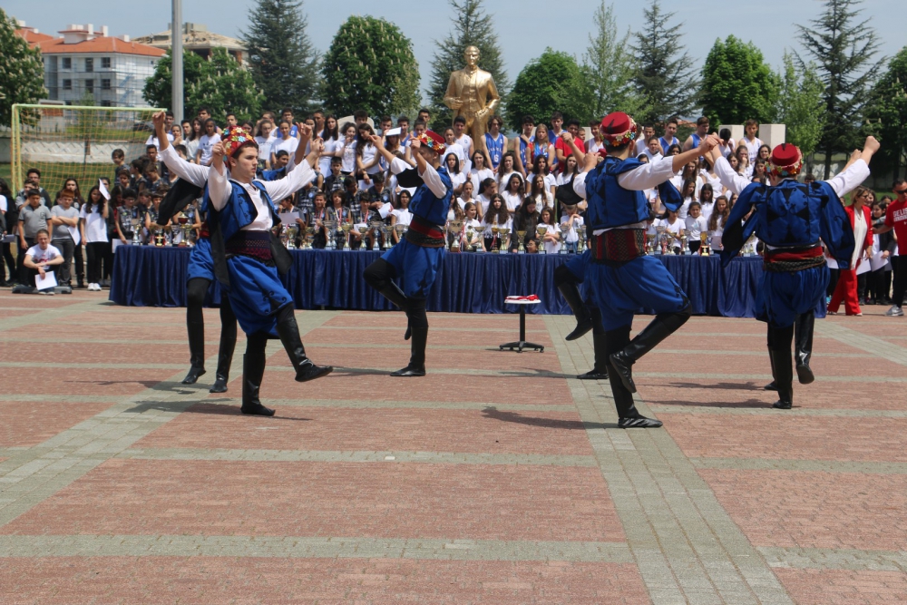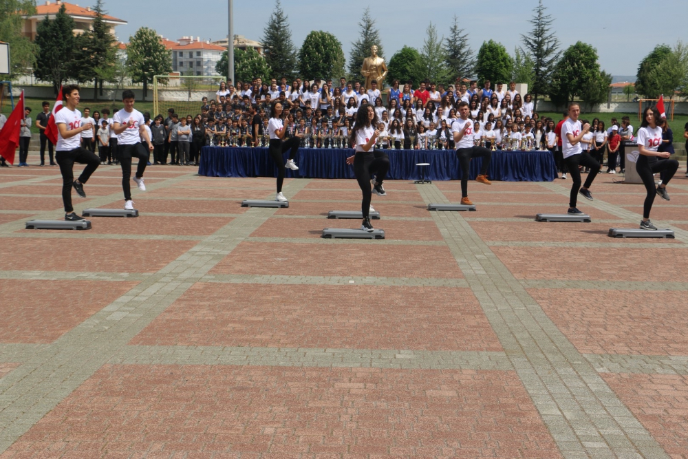 Öğrencilerimizin hazırladığı step gösterisi, zeybek gösterisi ve eskrim takımımızın gösterisi kutlamaya renk kattı. Cirit atma branşında olimpiyat üçüncüsü olan Münevver Hancı`nın okulumuz öğrencileri adına yaptığı konuşmanın ardından Yönetim Kurulu Başkanımız Sayın Erdal Şahbaz, Münevver Hancı`ya ve aynı zamanda Lise Müdür Yardımcımız olan antrenörü Gürbüz Çam`a başarılarından dolayı plaketlerini verdi. Okulumuzu çeşitli spor dallarında, ulusal ve uluslararası birçok müsabakada temsil eden öğrencilerimize, Beden Eğitimi öğretmenlerimiz tarafından teşekkür belgeleri verildi. Ayrıca öğrencilerimizi bu müsabakalara hazırlayan öğretmenlerimize de Lise Yöneticimiz Sinem Beken tarafından teşekkür belgeleri verildi.