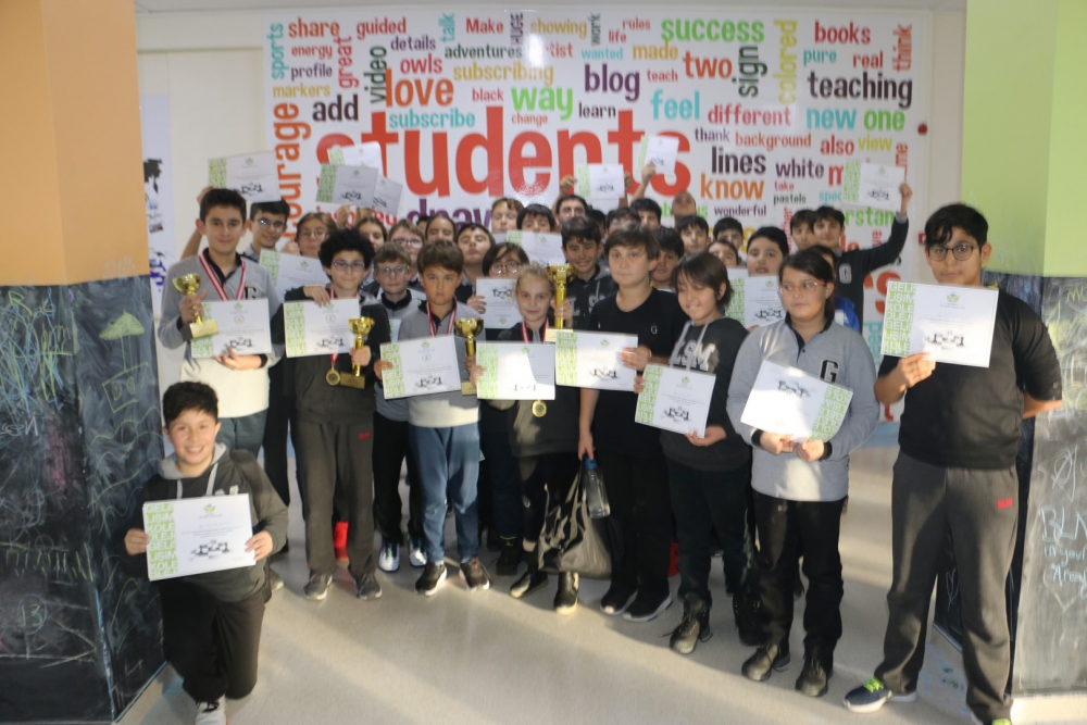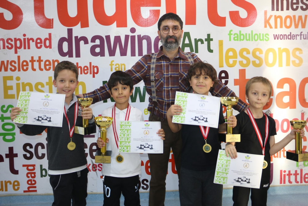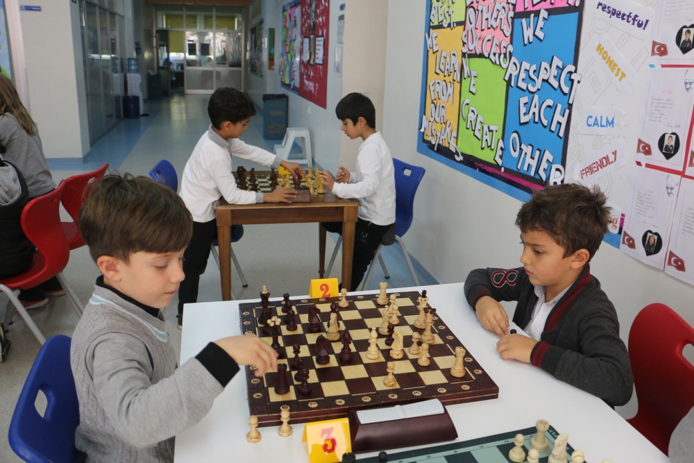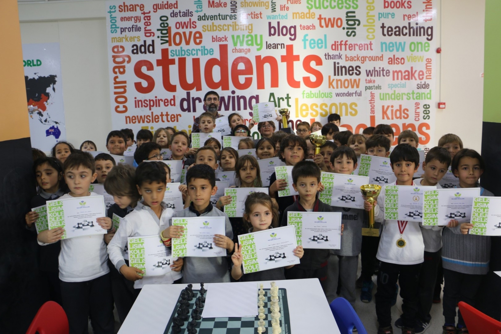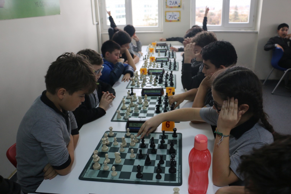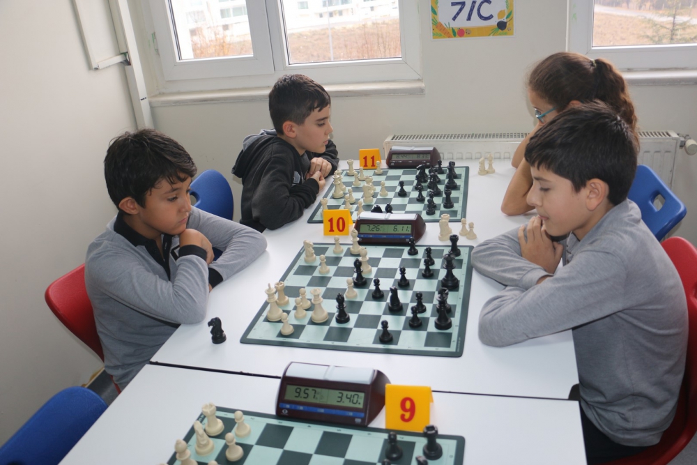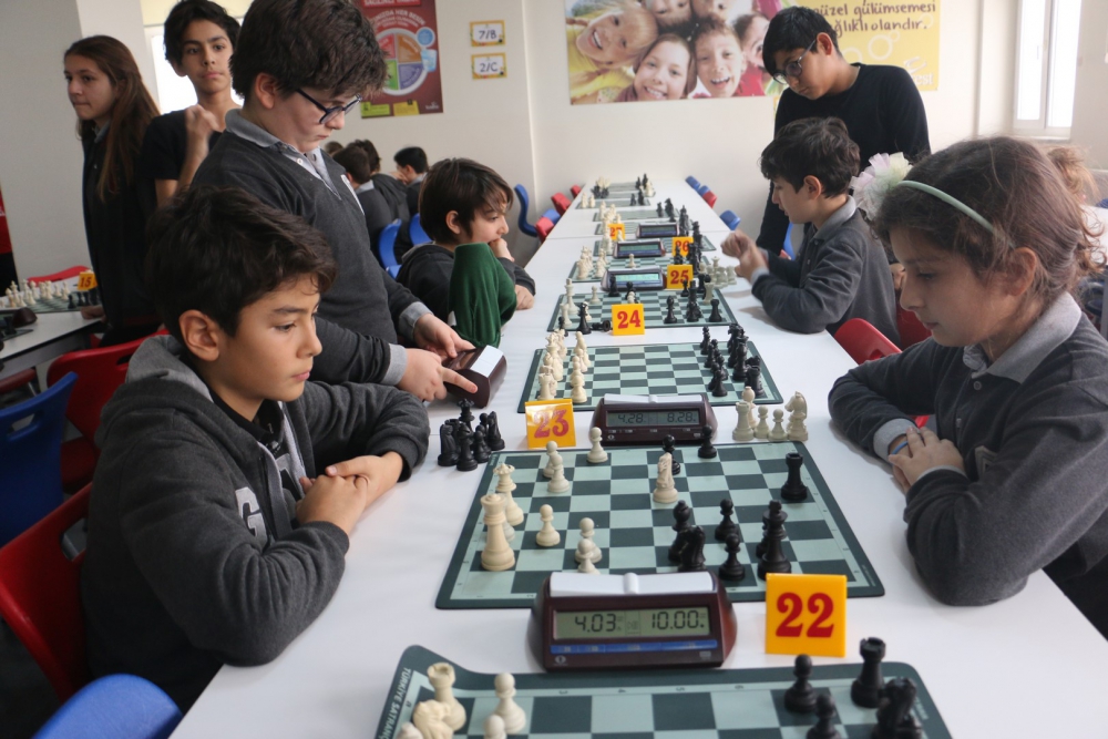 puan toplayarak kendilerine ilk dört sıralamada yer buldular. Çocukların oyun eksikliklerini gidermek, turnuva alışkanlığı kazandırmak adına yapılan etkinliklerimizde, ilk dört oyuncuya Kupa, Madalya ve Başarı Belgesi ile tüm katılımcılara Katılım Belgesi verildi. Turnuvalara katılan tüm öğrencilerimizi tebrik eder, başarılarının devamını dileriz. Gerçekleştirilen turnuvalarda afiş tasarımıyla Ortaokul öğrencimiz Arda TÜRKMEN`e, grafikerlerimiz Emine AYTEKİN ile Yakup KAYA`ya, emeği geçen personelimize, turnuva direktörü ve başhakem olarak görev yapan satranç öğretmenimiz Deniz YÜCE`ye teşekkür ederiz.