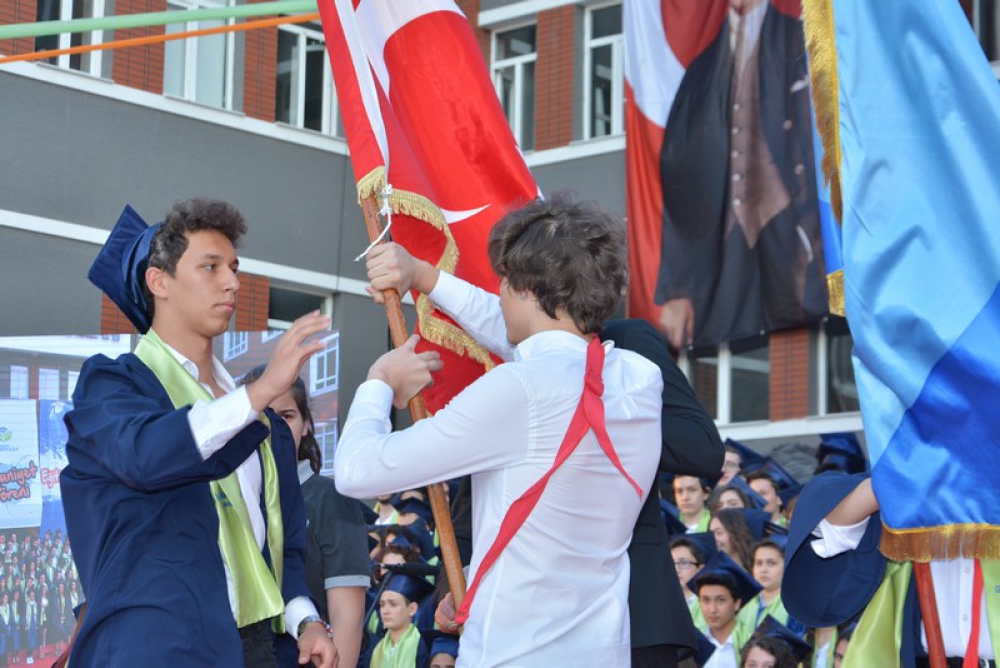 Tüm öğrencilerimizin diplomalarını almaları ve keplerin atılmasından sonra havai fişek gösterisi konukları büyüledi. Tören mezuniyet pilavı ile son buldu.
