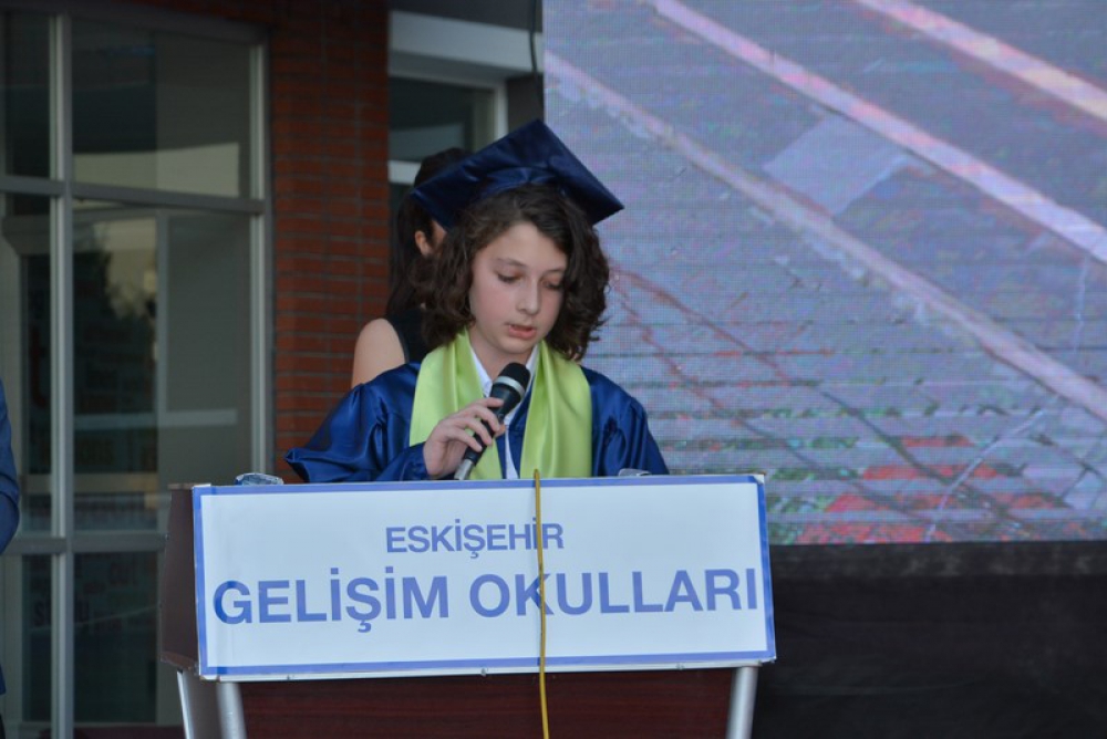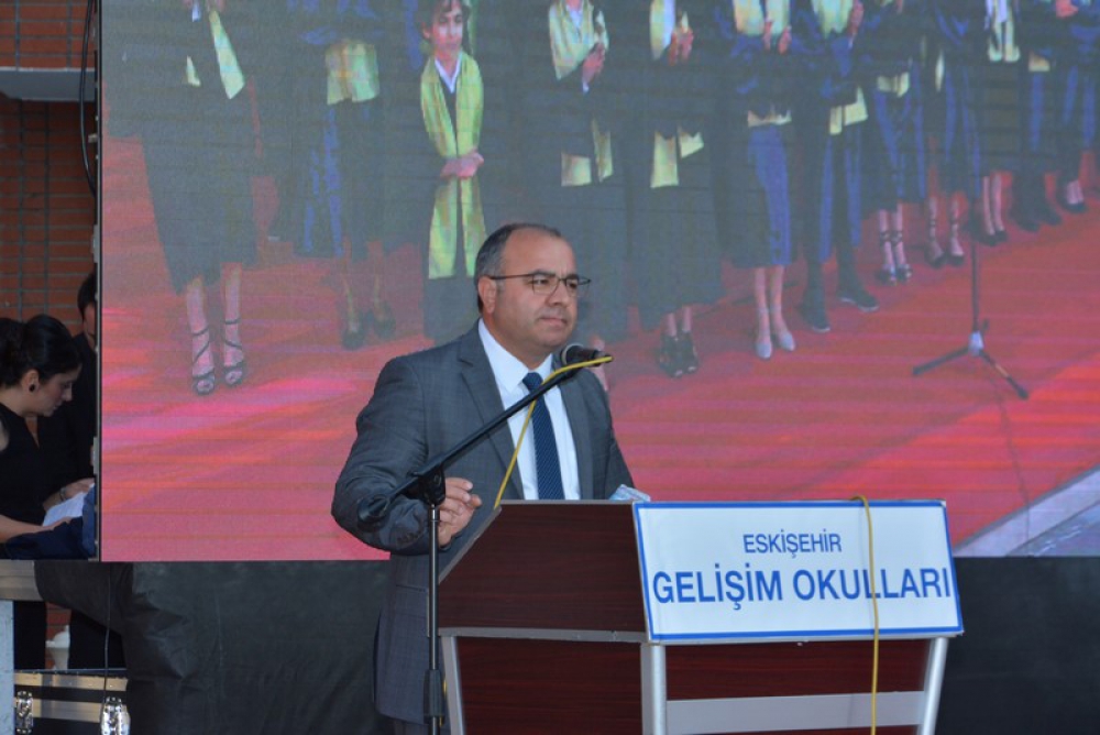 8. ve 12. sınıf öğrencilerimizin heyecanla bekledikleri mezuniyet töreni 8 Haziran Cuma günü gerçekleşti. Eskişehir Gelişim Okulları Yönetim Kurulu Başkanı Erdal Şahbaz açılış konuşmasında öğrencilerimizin bilimselliği, hür düşünceyi, çağdaşlığı ve evrensel değerleri içselleştirmeleri gerektiğini dile getirdi.