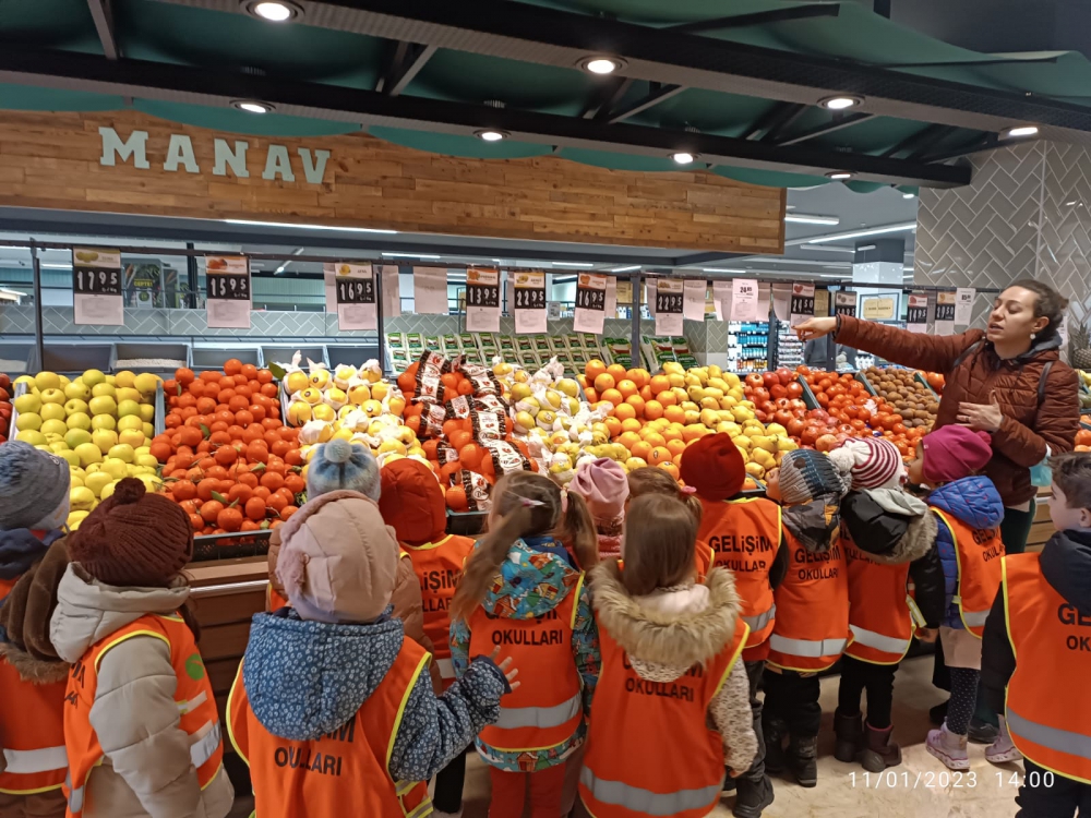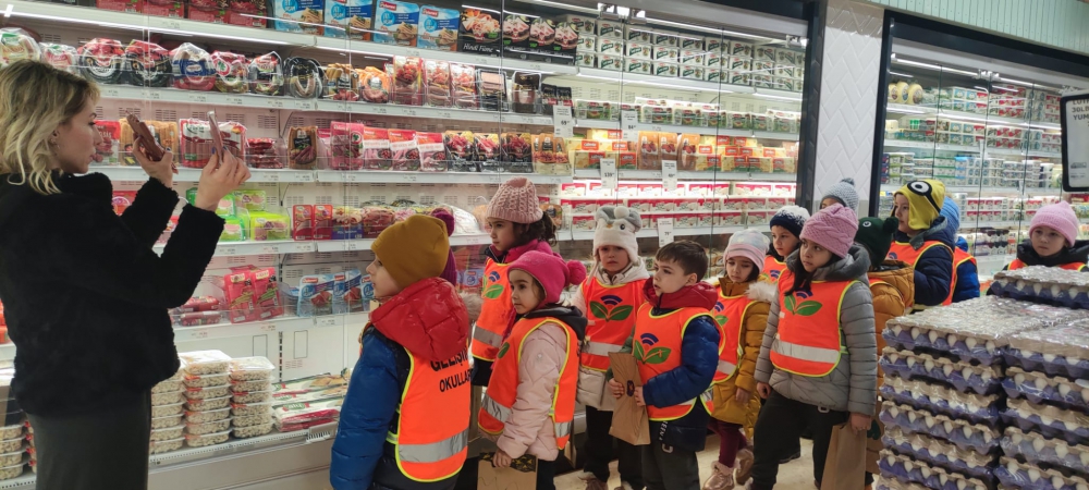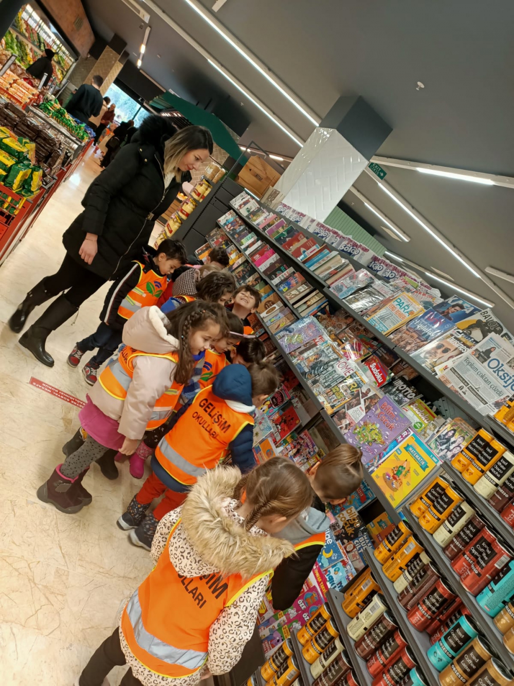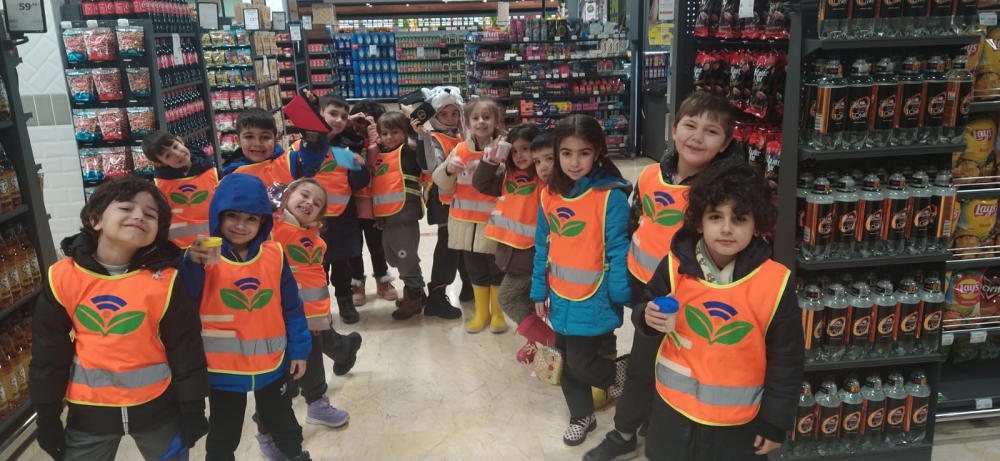 Anaokulu öğrencilerimiz, bilinçli tüketim ve matematik hayatın içindedir konularını pekiştirmek için okul yakınındaki bir supermarkete gezi düzenledi. Markette sağlıklı ürünler, son kullanma tarihi ve ürünlerin ödeme aşamalarıyla ilgili bilgi alan öğrencilerimiz okul dönüşünde hazırlanan para görselleriyle matematik oyunları oynadı.