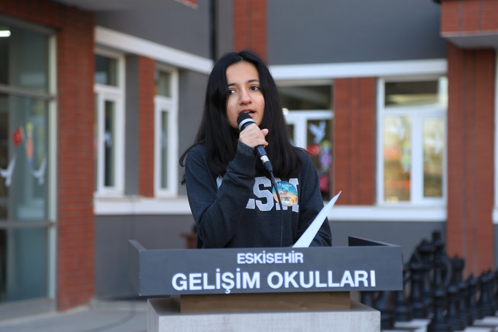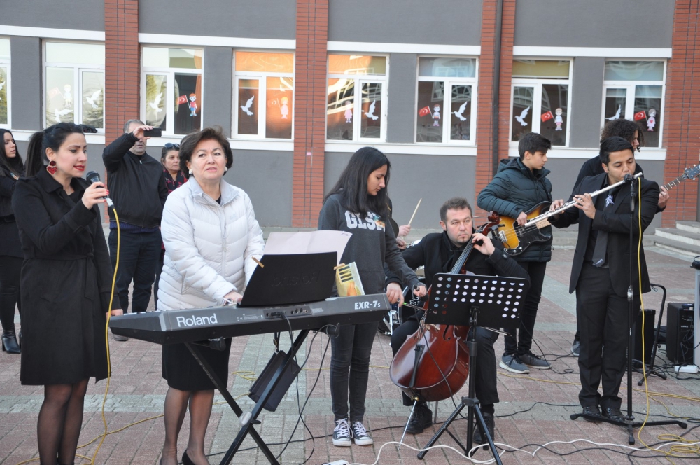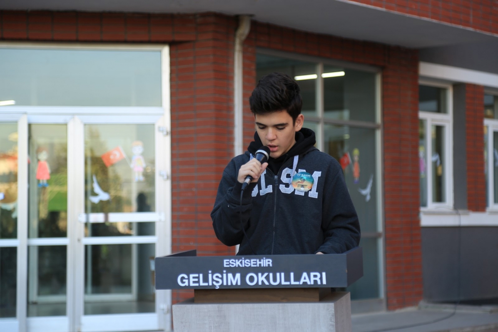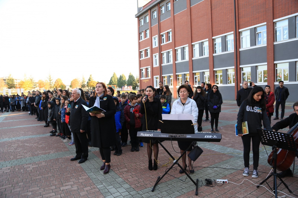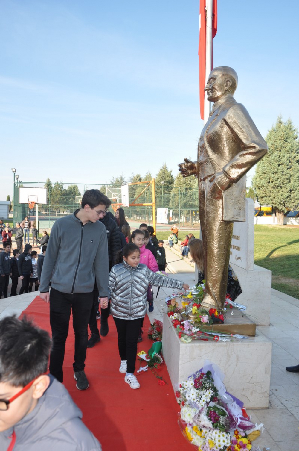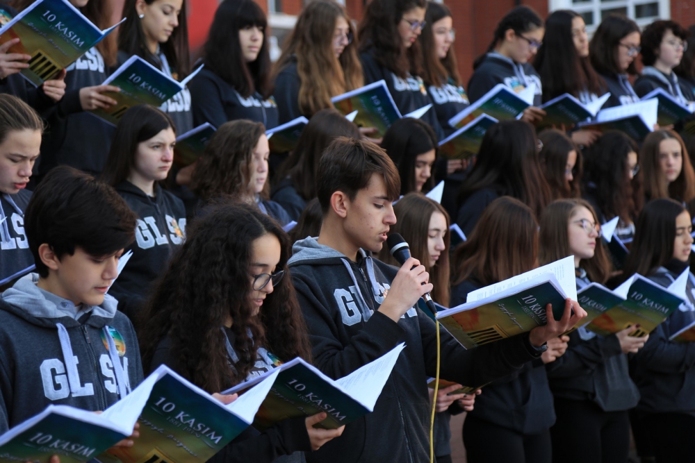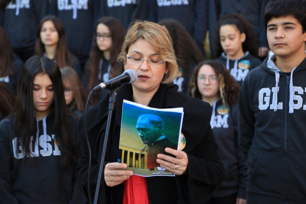 Her yıl olduğu gibi bu yıl da 10 Kasım`da saatler 09.05`i gösterdiğinde büyük bir coşku ile Ata`mızı andık. Saygı duruşu ve İstiklal Marşı`nın ardından okul Lise Yöneticimiz Sinem Beken`in duygu ve özlem yüklü konuşmasıyla başlayan tören, okulumuz 11. sınıf öğrencimiz Ezgi Kaynak`ın okuduğu şiir ve 10. sınıf öğrencimiz Hava Dilara Aşar`ın Atatürk için kendisinin yazdığı metinle devam etti. Ardından okulumuzun tüm 9. Sınıflarının katıldığı oratoryo gösterisi izleyenlere coşku dolu anlar yaşattı. Töreni düzenleyen okulumuz müzik öğretmenleri ve Türk Dili ve Edebiyatı öğretmenlerini tebrik eder, törenimize katılan tüm öğrendi ve velilerimize teşekkür ederiz.