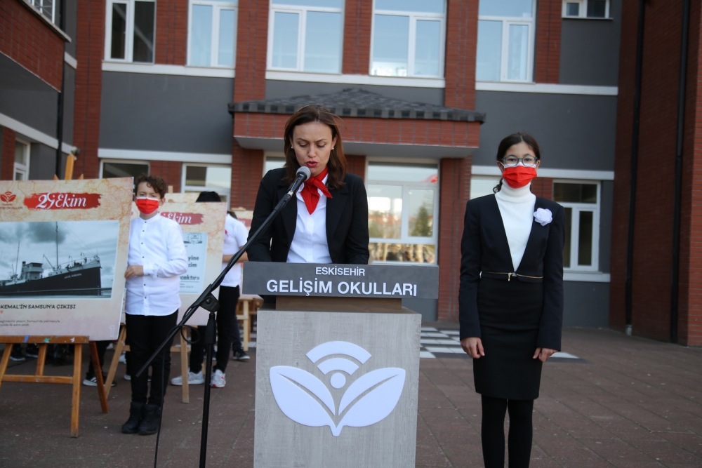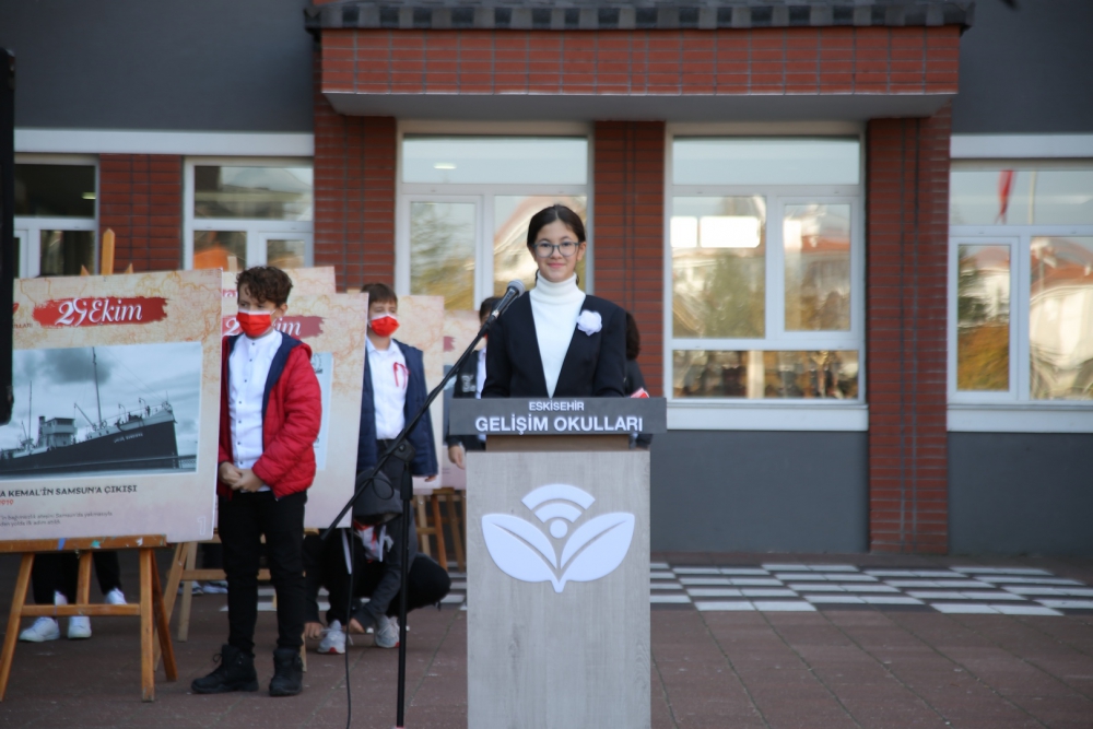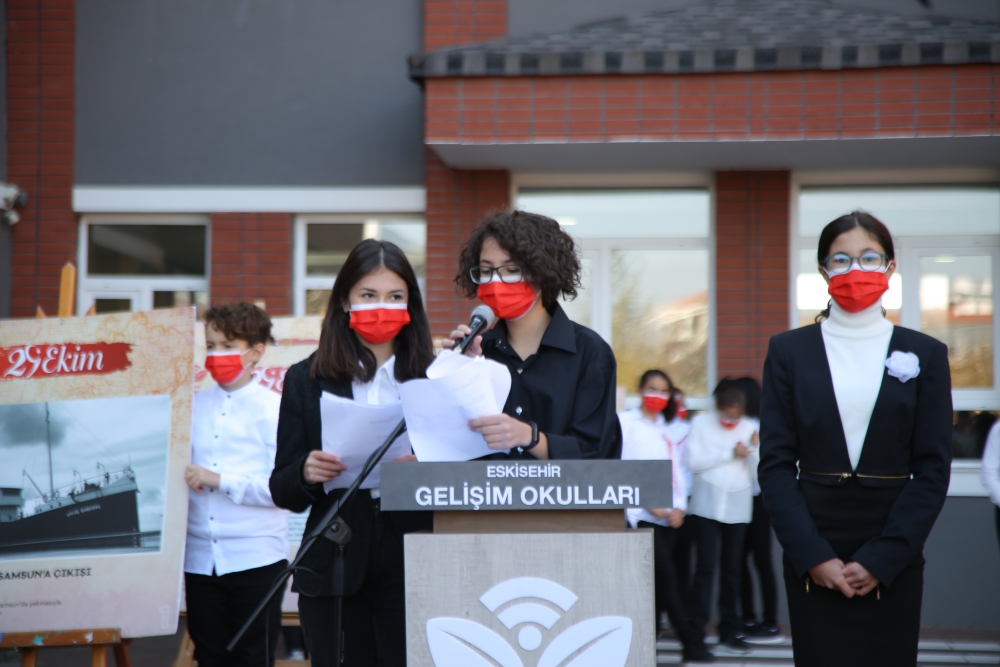 Törende Sosyal Bilgiler Öğretmenimiz Aslı Kadriye Durgut’un günün anlam ve önemini belirten konuşmasının ardından öğrencilerimizin okuduğu “Cumhuriyet” şiirleri coşkuyu artırdı. Cumhuriyet’in zorlu kuruluş süreci ve Cumhuriyet’in bize kazandırdıklarıyla ilgili “CUMHURİYET’E GİDEN YOL” konulu sunumun ardından, koronun seslendirdiği oratoryo ve marşlar coşkuyu artırdı. Tüm öğrencilerimiz ve velilerimiz bayraklarla, alkışlarla marşlara eşlik etti.