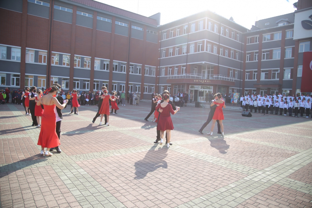 Törenin son bölümünde 7. sınıf öğrencilerimizin sunduğu vals gösterisi törene renk kattı. Kapanışta Onuncu Yıl Marşı’yla öğrencilerimiz sınıflarına uğurlandı.