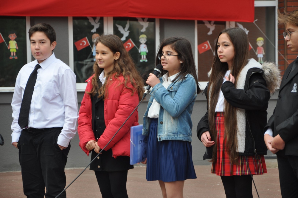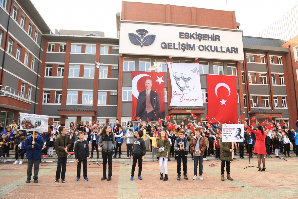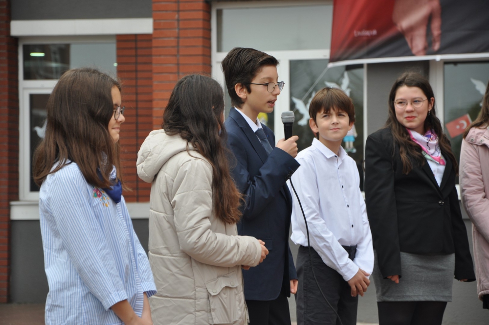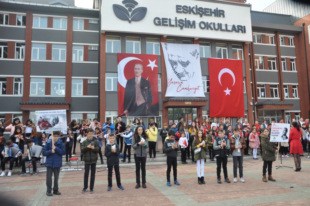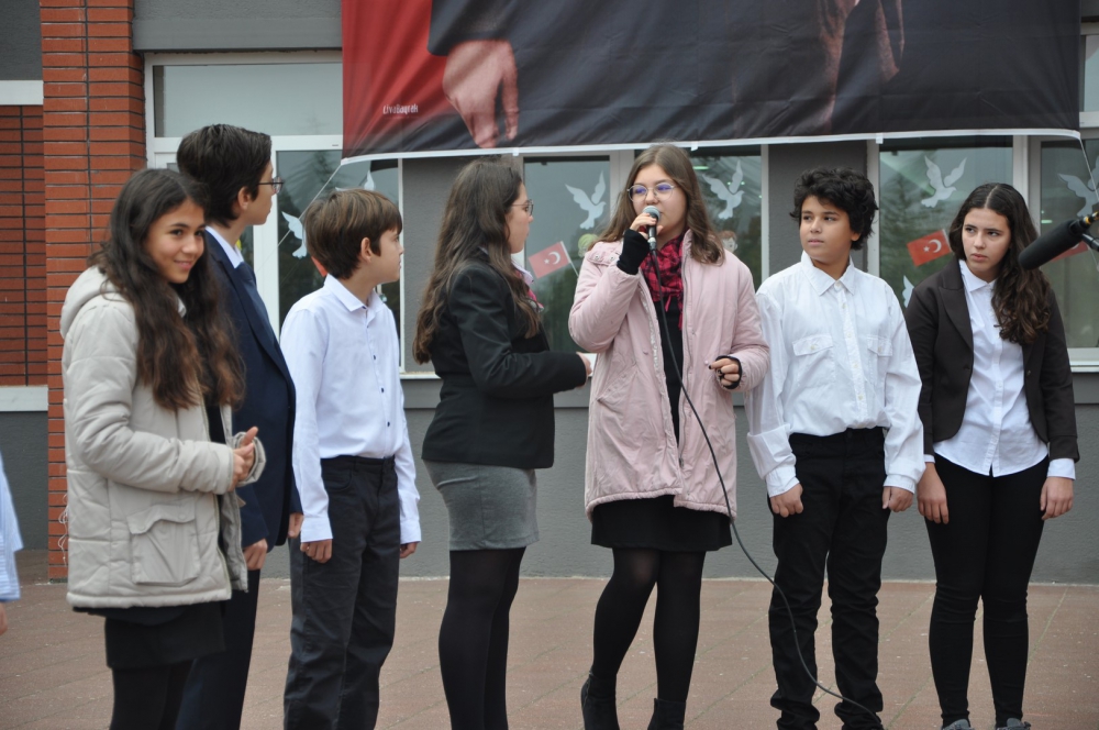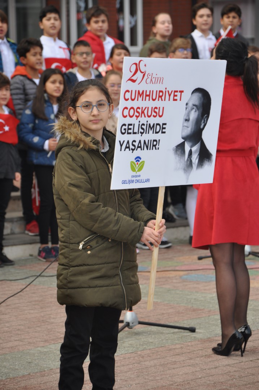 Türkçe öğretmenlerimizin düzenlediği “Cumhuriyet Konulu Hikaye ve Şiir Yarışması”ında ve Beden Eğitimi öğretmenlerimizin düzenlediği atletizm yarışmasında dereceye giren öğrencilerimize ödülleri verildi. Gelişim Senfoni Orkestrası ve 5. sınıf öğrencilerimizden oluşan koronun seslendirdiği coşkulu marşlara tüm öğrencilerimiz ve velilerimiz bayraklarla, alkışlarla eşlik etti.