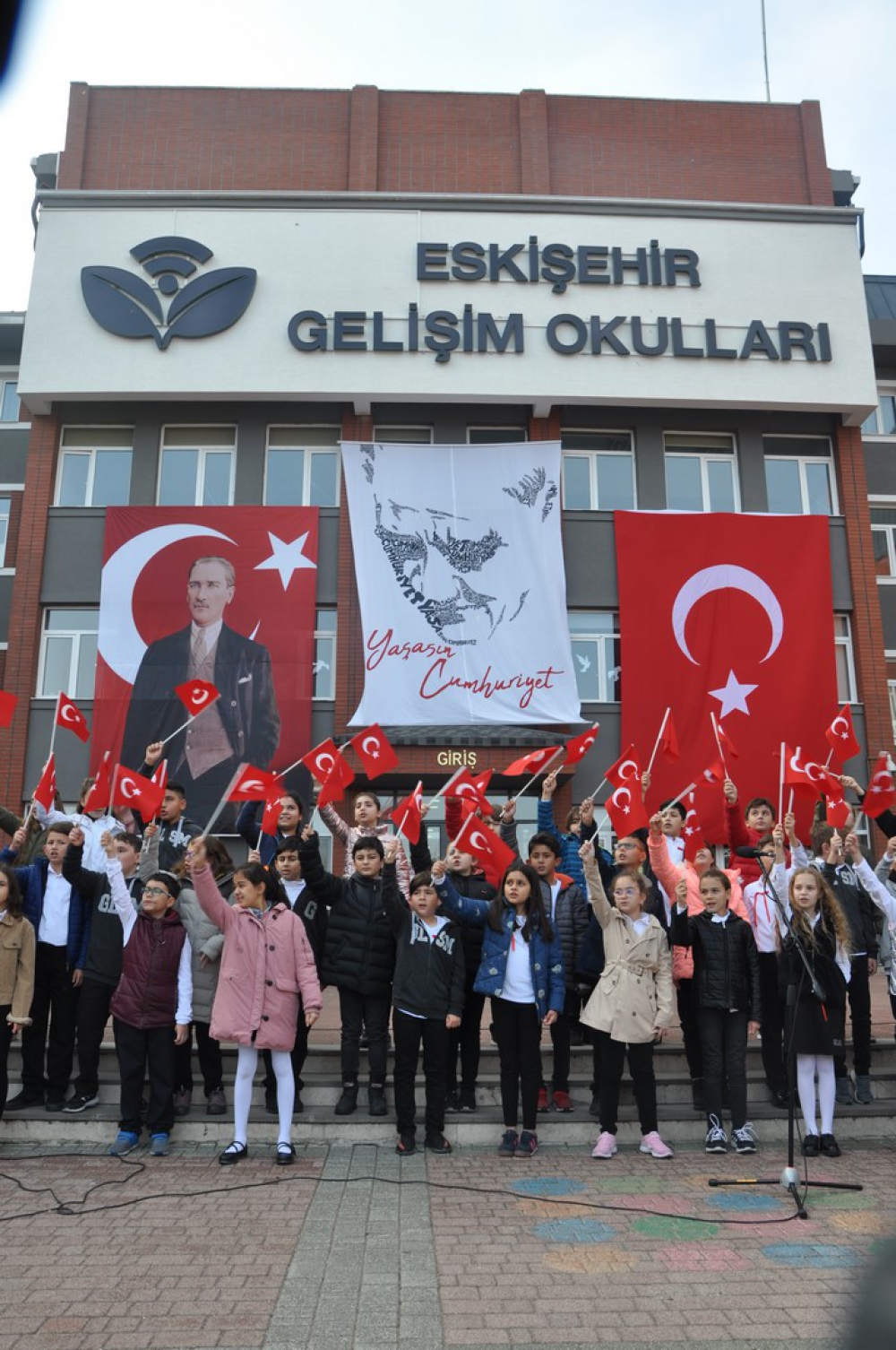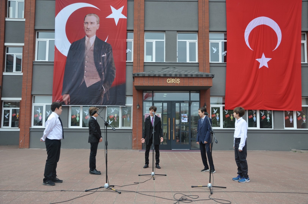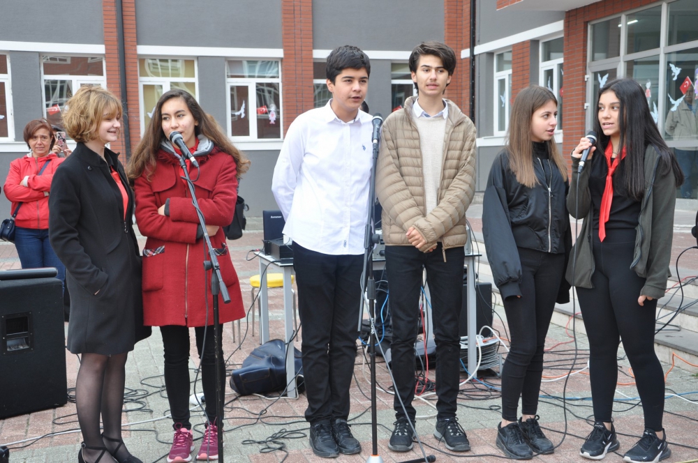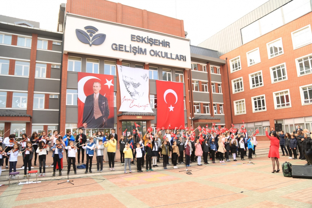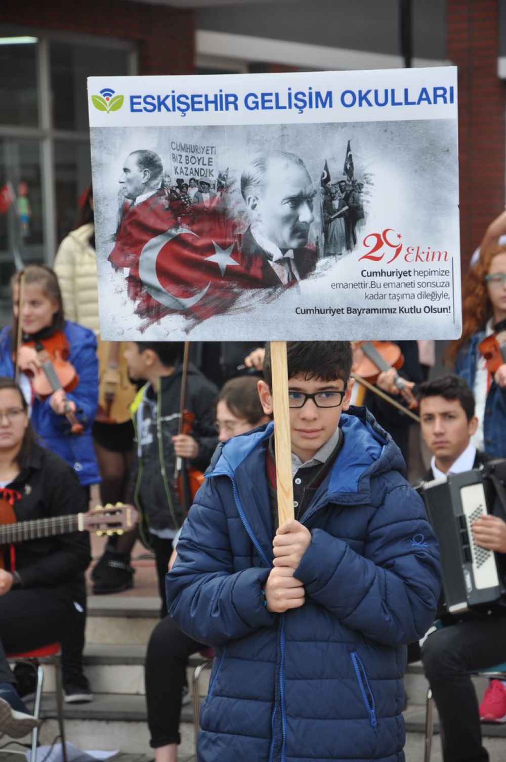 Türkçe öğretmenlerimizin düzenlediği “Cumhuriyet Konulu Hikaye ve Şiir Yarışması”ında ve Beden Eğitimi öğretmenlerimizin düzenlediği atletizm yarışmasında dereceye giren öğrencilerimize ödülleri verildi. Gelişim Senfoni Orkestrası ve 5. sınıf öğrencilerimizden oluşan koronun seslendirdiği coşkulu marşlara tüm öğrencilerimiz ve velilerimiz bayraklarla, alkışlarla eşlik etti.