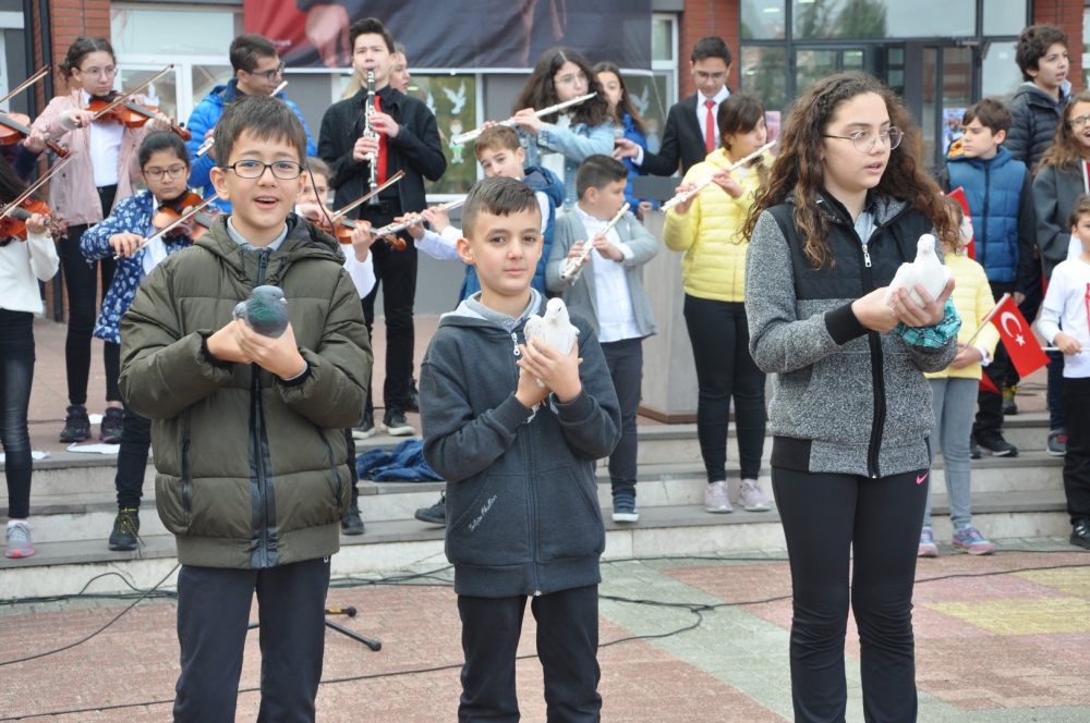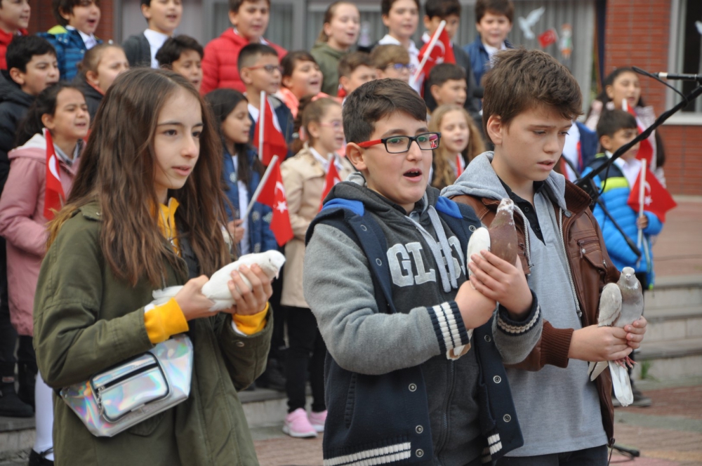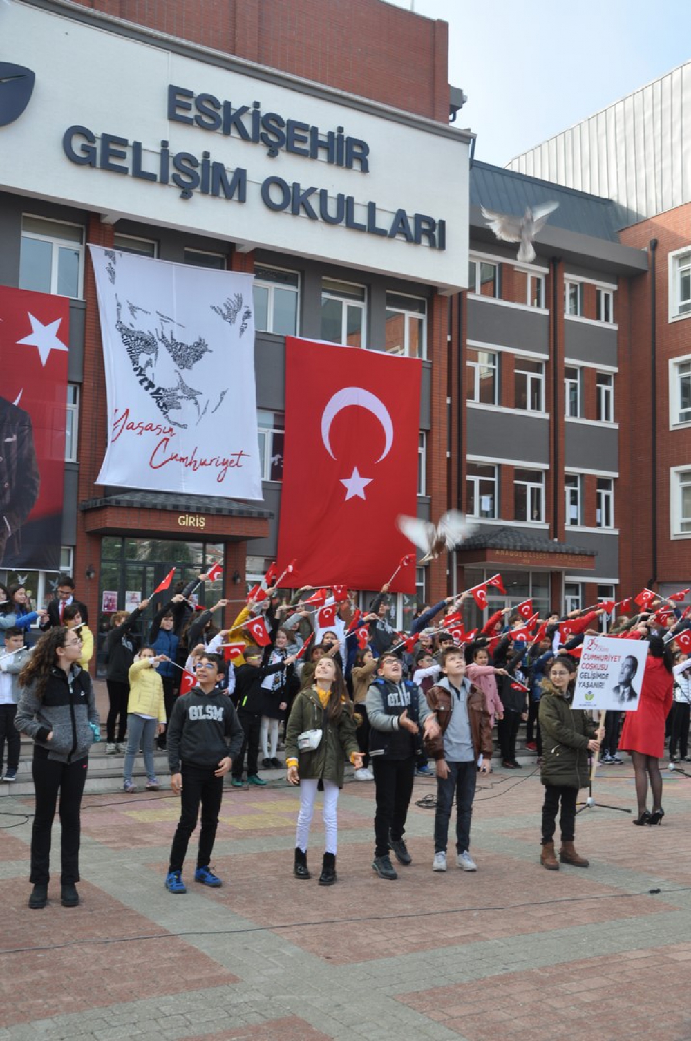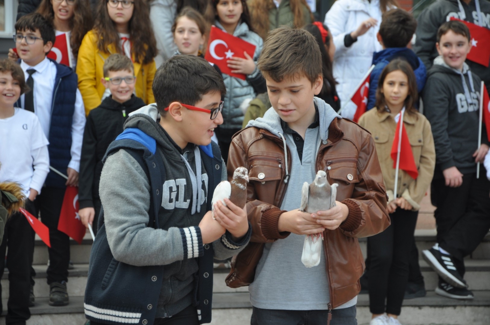 Törenin son bölümünde “DEMOKRASİ, HÜRRİYET, EŞİTLİK, ULUSALCILIK, HALKÇILIK, LAİKLİK, DEVRİMCİLİK, DEVLETÇİLİK” kavramlarını temsil eden “CUMHURİYET” güvercinleri uçuruldu. Güvercinlerin uçurulma anında öğrenciler büyük heyecan yaşadı.
