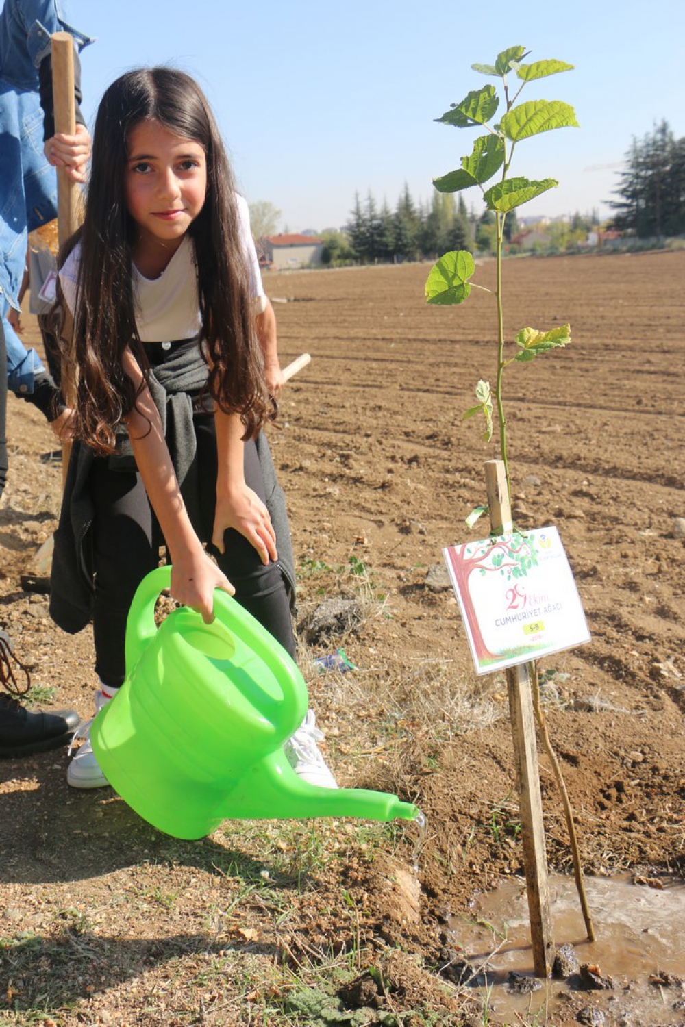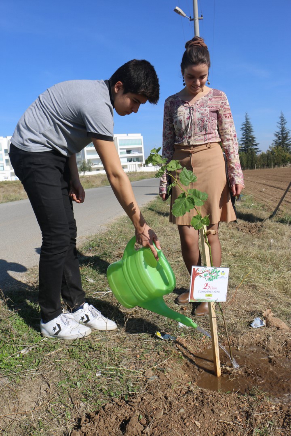 Öğretmen ve öğrencilerimizin katılımıyla “Her sınıf için bir Cumhuriyet ağacı.” düşüncesinden hareketle okulumuzda fidan dikme etkinliği düzenledik.