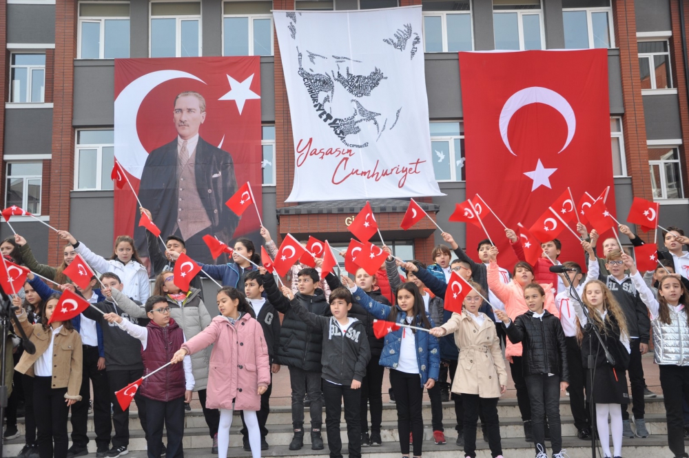 29 Ekim Salı günü yapılan törende Sosyal Bilgiler Öğretmenimiz Tuba Aslan’ın günün anlam ve önemini belirten konuşmasının ardından 5 ve 6. sınıf öğrencilerimizin okuduğu “Cumhuriyet” şiirleri coşkuyu artırdı. Cumhuriyet’in zorlu kuruluş süreci ve Cumhuriyet’in bize kazandırdıklarıyla ilgili “YAŞASIN CUMHURİYET” konulu tiyatro gösterisi, Gelişim Ortaokul Tiyatro Kulübümüz tarafından canlandırıldı.