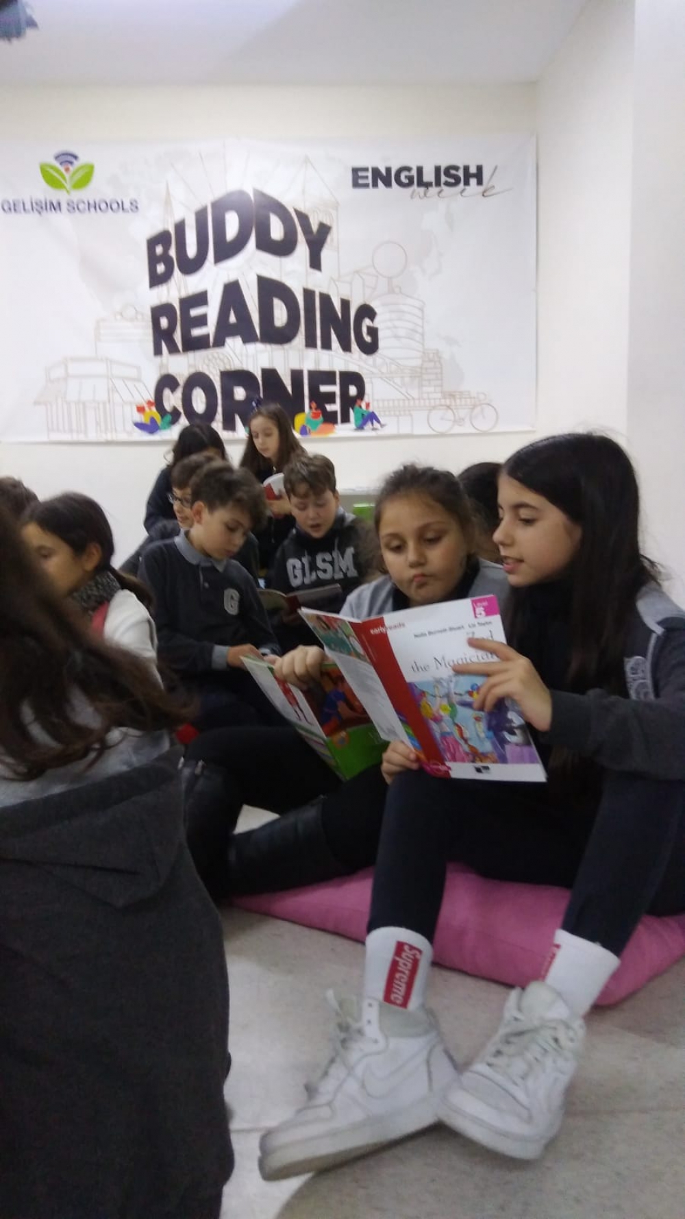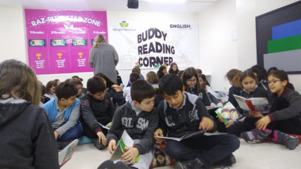 4B and 5B classes did Buddy Reading for English week on Monday afternoon. Students partnered up to read English books to each other and then discuss the books together. We are looking forward to the rest of the 4th and 5th graders reading later this week.