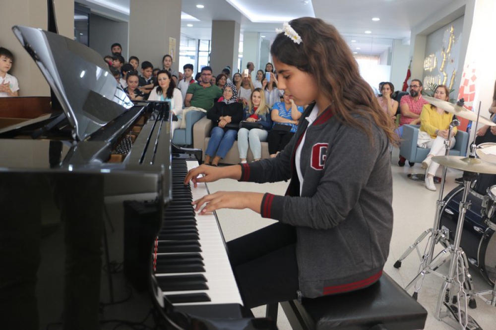 Geleneksel müzik resitalimiz 4 Haziran tarihinde öğrencilerimizin ve velilerimizin katılımıyla gerçekleşti. Özgür Toğram (gitar), Arda Yaşar (Bateri), Zeynep Tigin (piyano), Nilsu Üstgel (keman), Duru Pallı (piyano), Lina Talia Bıyıklı (piyano), Gülce Özkaratay (piyano), Ceyla Azcan (gitar), Bahar Şener (gitar), Ceyda Kurnaz (piyano), Çağla Karasu (flüt), Beren Altın (keman), Zeynep İphar (piyano), Defne Tüzün (piyano), Ayça Gülfen Usta (piyano), İrem Akyol (keman), Elif Taşcı (gitar), Buse Beril Baran(keman), Ege Baran Varoğlu(keman), Fatma Defne Orhan (piyano), Nida Ergün (piyano), Ceren Genç (gitar) resitalleriyle izleyicilere keyifli dakikalar yaşattılar. Resital sonunda yöneticilerimiz tarafından öğrencilerimize sertifikaları dağıtıldı. Öğrencilerimizi katılımlarından dolayı kutlar, başarılarının devamını dileriz.