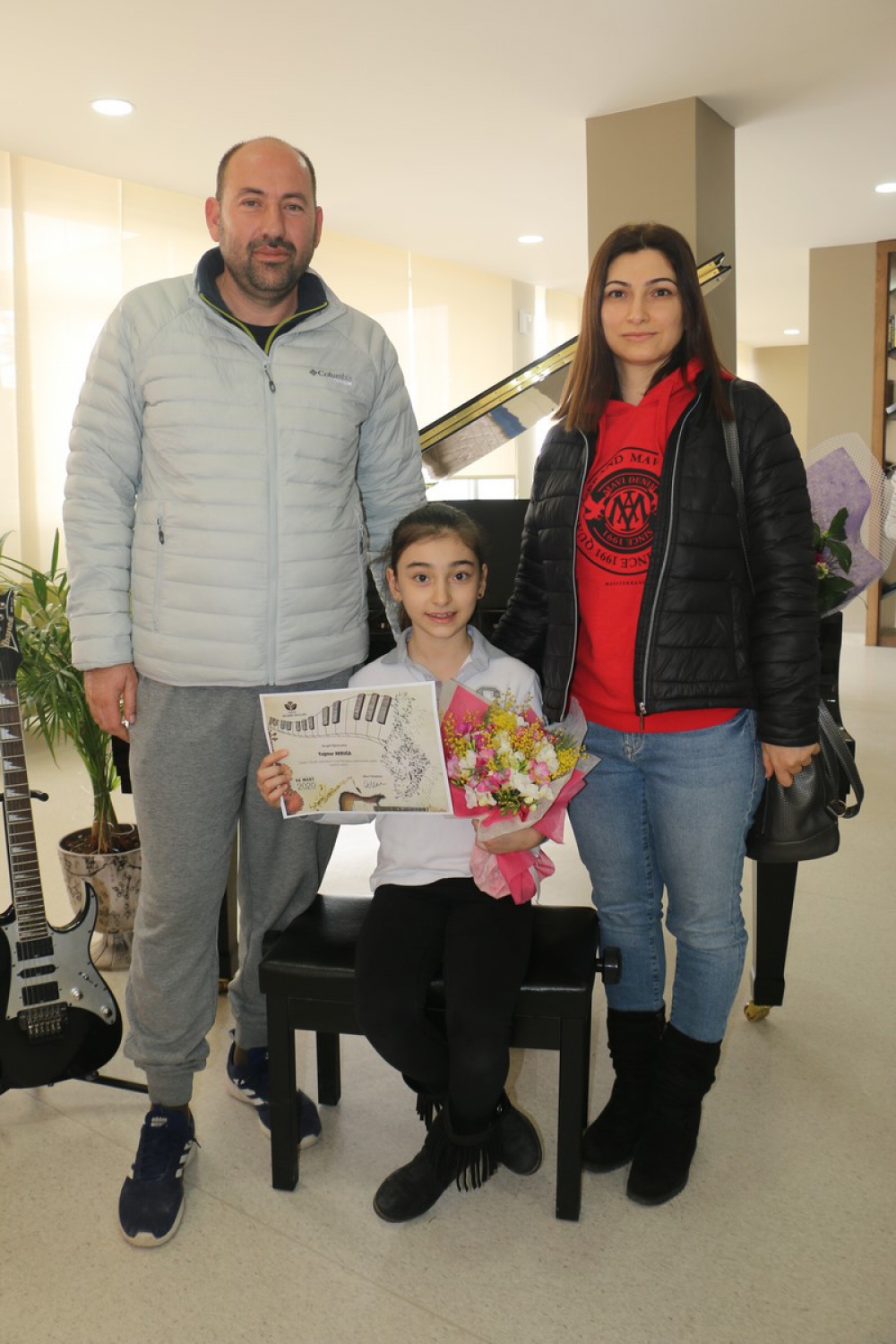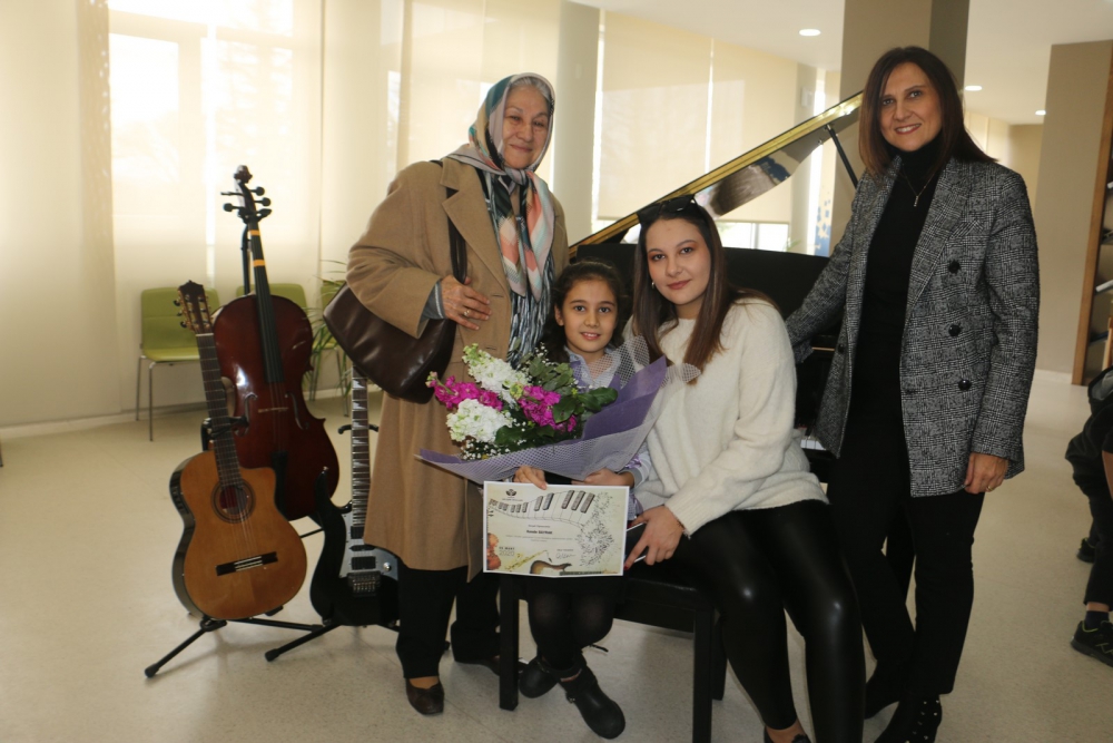 Öğrencilerimizden Duru Gelir (gitar), Asya Su Kocakaya (gitar), Efe Karakaya (gitar), Kaan Utku Acar (gitar), Mina Çakıcı (keman), Emir Akdeniz (keman), Yağmur Akbuğa (piyano), Melis Aydın (piyano), Duru Özdil (piyano), Kerem Kırca (piyano), Sugubse Başaran (piyano), Yağız Eymen Gürsul (piyano), Ateş Köseoğlu (piyano), Zeynel Eren Güsul (Piyano), Ali Ege İpar (piyano), Hande Bayrak (piyano), Eylül Yılmaz (piyano), resitalleriyle izleyicilere keyifli dakikalar yaşattılar. Resital sonunda yöneticilerimiz tarafından öğrencilerimize sertifikaları dağıtıldı. Öğrencilerimizi katılımlarından dolayı kutlar, başarılarının devamını dileriz.