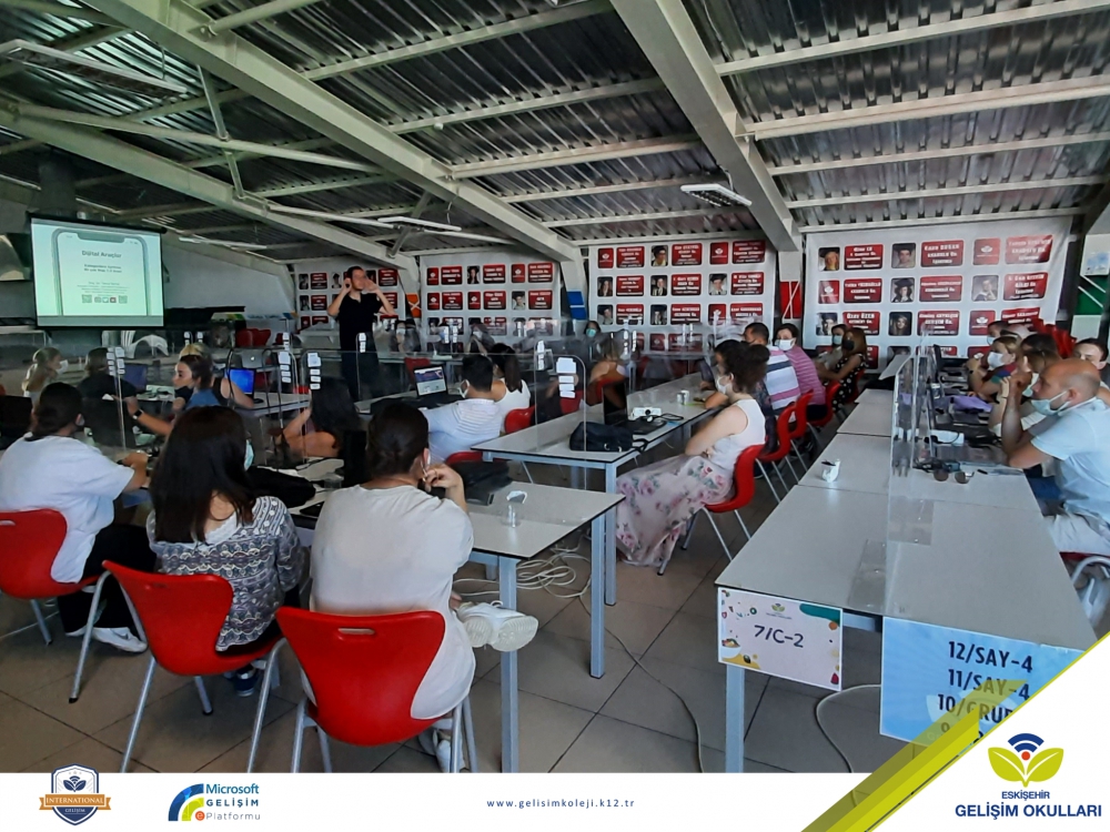 Tüm öğretmenlerimiz hizmet içi eğitimleri kapsamında, Eğitim Bilimleri Bilgisayar ve Öğretim Teknolojisi Uzmanı Doç.Dr Yavuz Samur’un "Eğitimde Web 2.0 Araçları Kullanımı ve Ders Tasarımı Atölyesi" konulu eğitimine katıldılar.