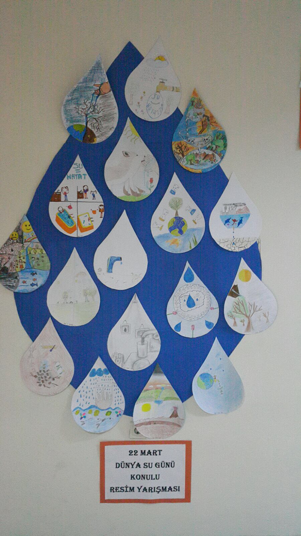 Haftanın başında öğrencilerimiz dolap kapaklarına su damlacıkları yaparak haftanın önemini vurgulayan görsellerle süslediler. Sonrasında sınıf içinde fen bilimleri öğretmenlerimiz su gününün önemini vurgulayarak sınıfta bilgilendirme yaptılar.