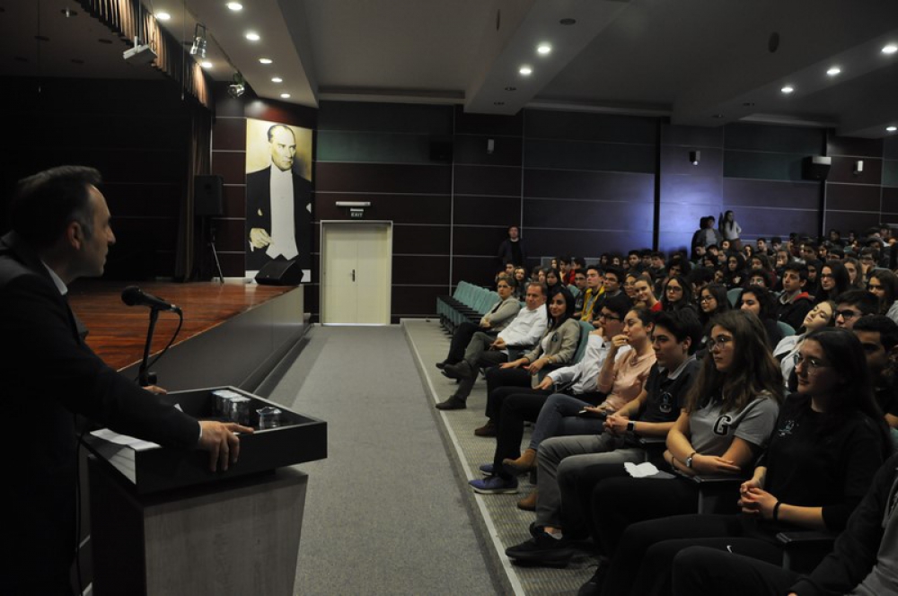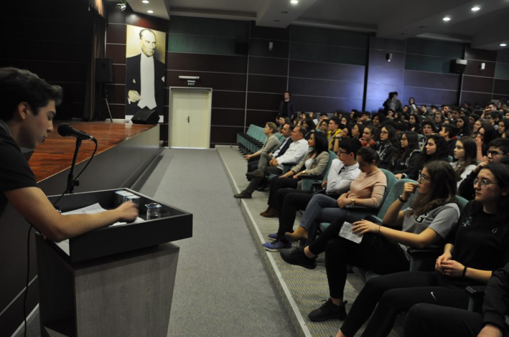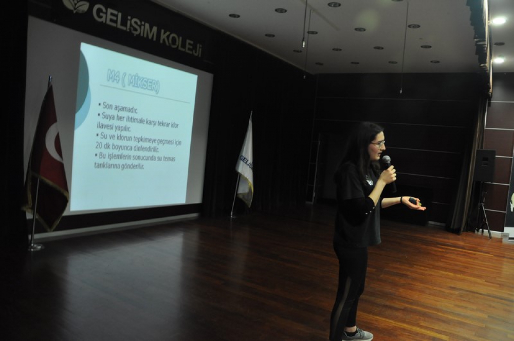 ESKİ Genel Müdürü Suat Balcı, konuşmacı olarak katıldığı programda suyun insan hayatındaki önemi , dünya üzerindeki su fakiri ülkeler, Türkiye’de kişi başına düşen temiz su miktarı, Türkiye’de su kayıp kaçak oranları ve su tasarrufu hakkında öğrencilerimizi bilgilendirdi.