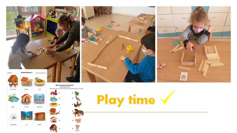 Our 5 year old kindergarten students created farms by using blocks, made their own sun with playdough, had pyjama party and made edible crafts by using marshmallows during English classes. They learnt new vocabulary such as hot, pyjama, blocks, farm, sun, yellow and etc.