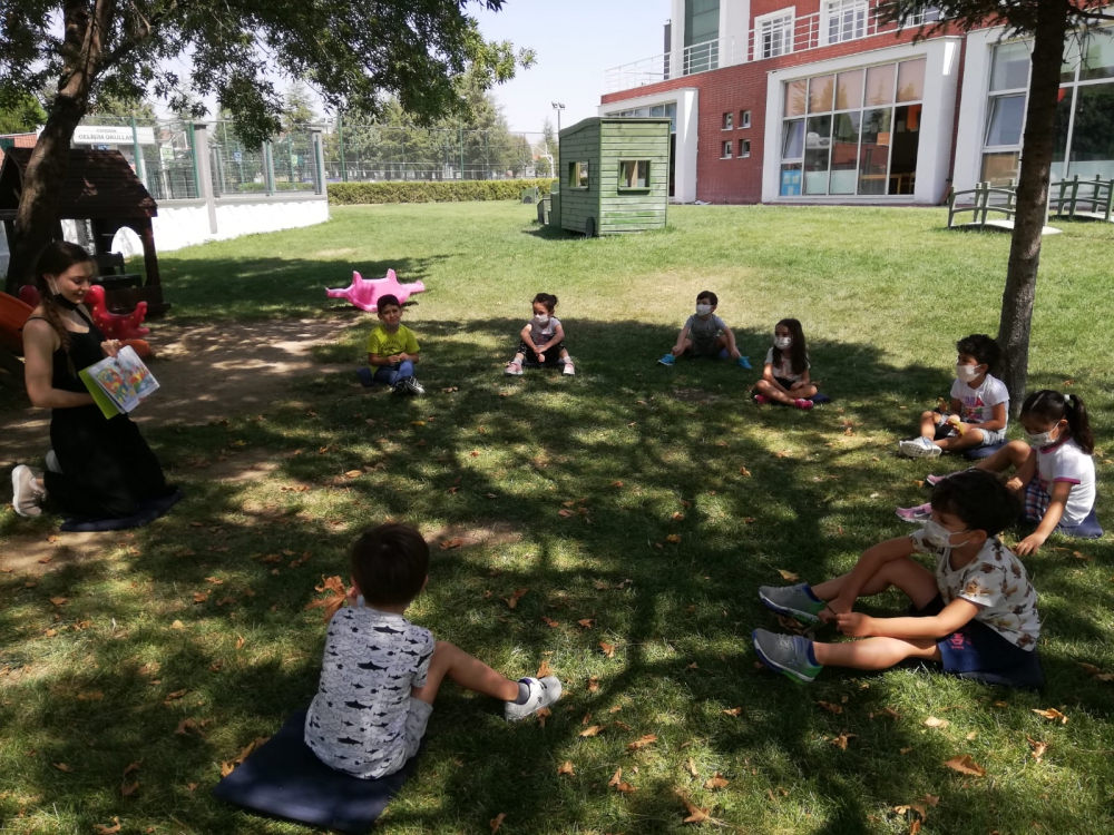 Arkadaşlarımla tanıştım. Kendimi tanıtmayı öğrendim. Bahçemizde boyama yaptık, oynadık ve hikayeler dinledik... Anaokulu el izimizi hiç unutmayacağız.Sarı otobüsümüzü çok seviyorum