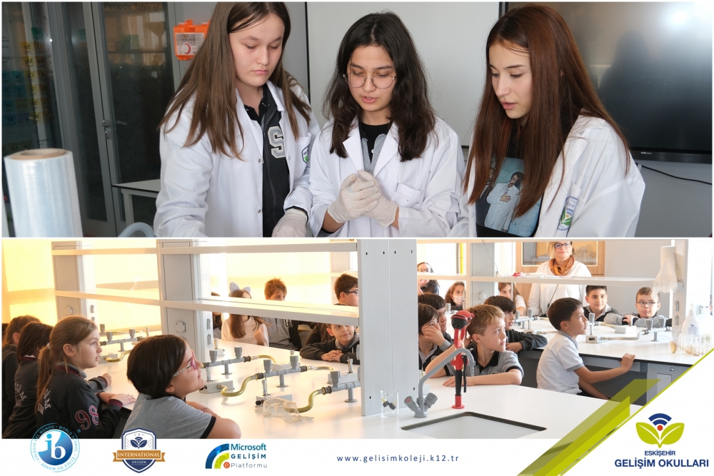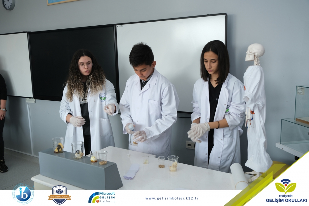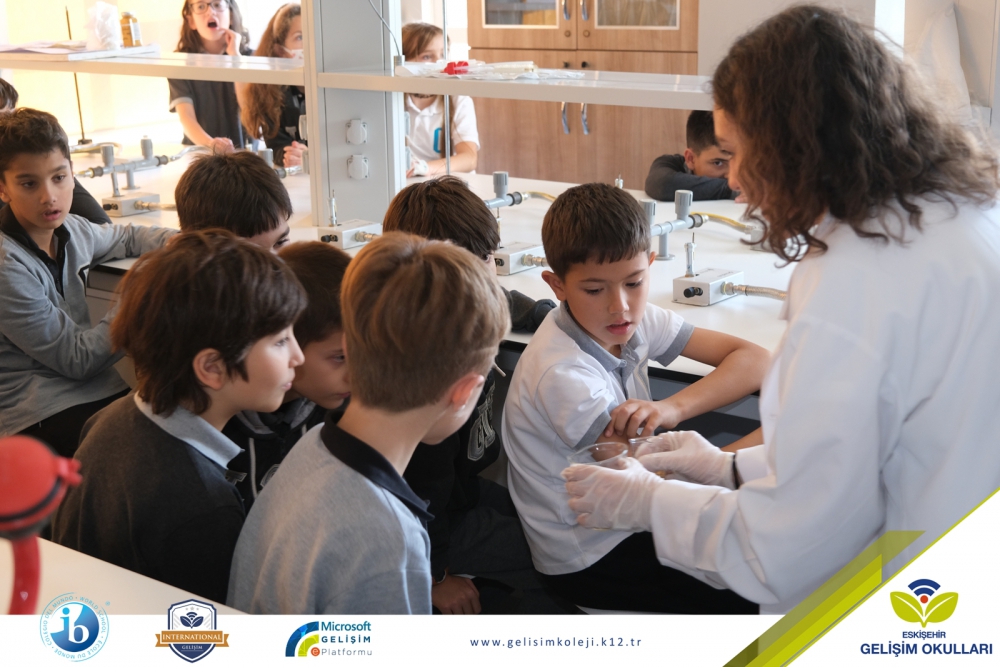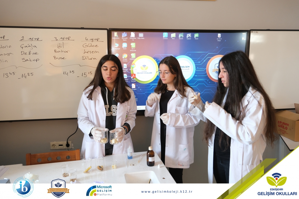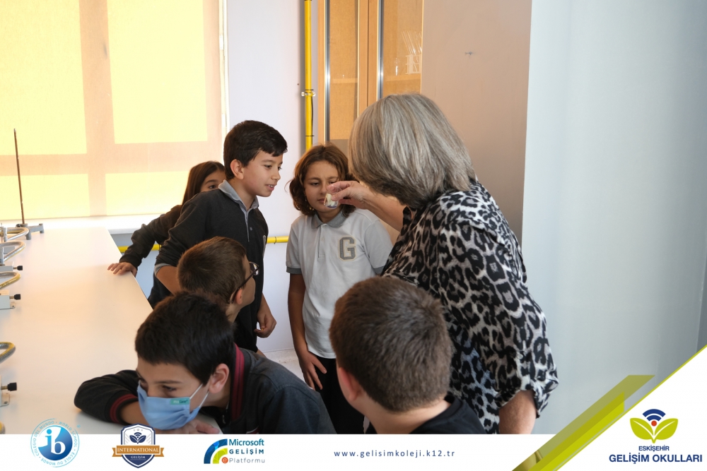 Besinlerin içeriklerini belirlemek amacıyla, Kimya Klubü 9 ve 10. sınıf öğrencilerimiz, 4. sınıf öğrencilerimizle birlikte lise laboratuvarında deney yaptılar.