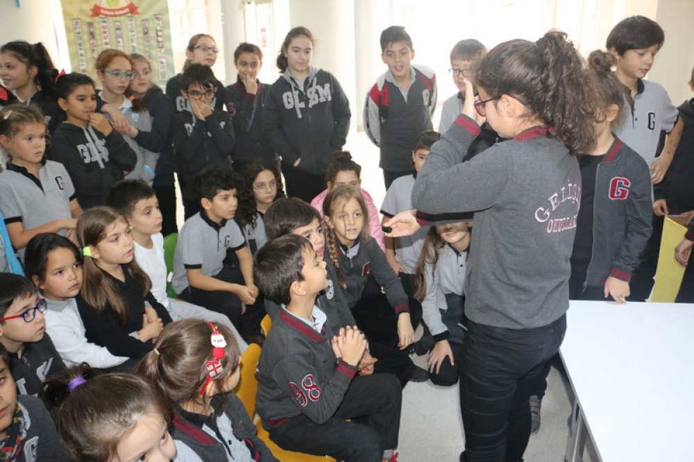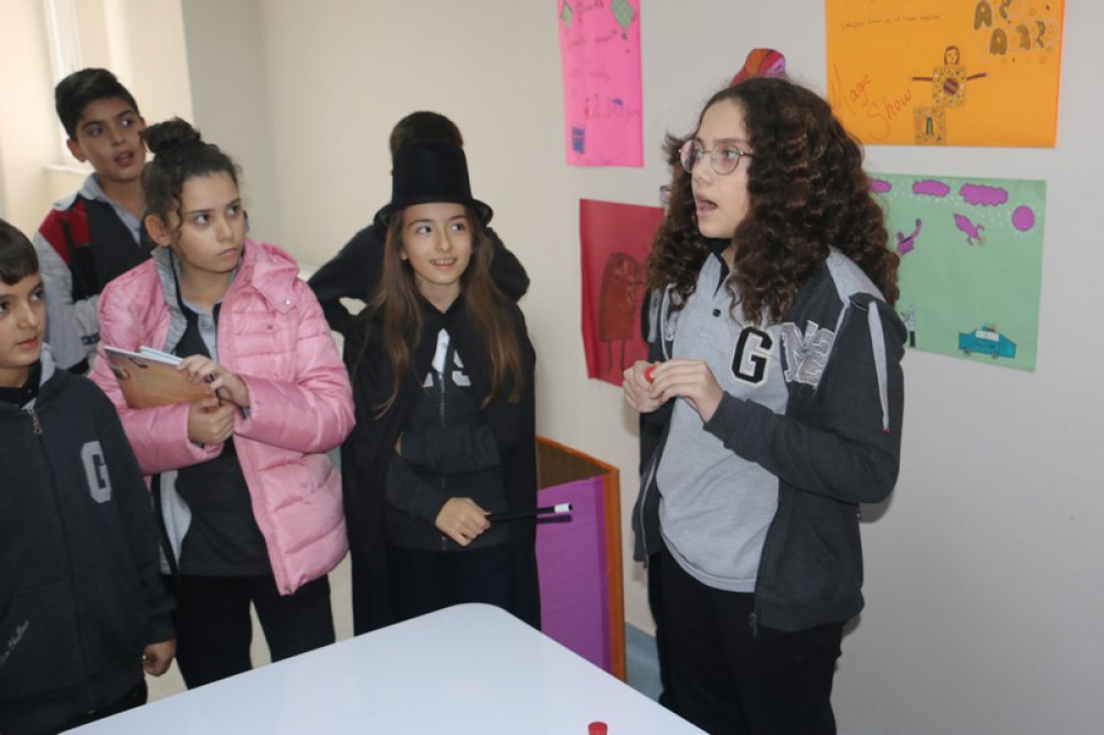 5. sınıf öğrencilerimiz ikinci sınıflarımıza İngilizce derslerinde hazırlamış oldukları “Magic Show” programını sundular. Öğrencilerimizin İngilizce olarak gerçekleştirdikleri sunumlarında, günlük hayatlarında da iletisim dili olarak İngilizceyi rahatlıkla kullanılabileceklerini deneyimlemiş oldular.