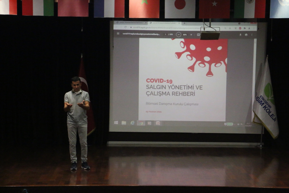 Yeni dönem hazırlıklarımız devam ederken iş güvenliği uzmanımız Engin Yetim “Salgın Yönetimi” konusunda öğretmenlerimize bilgilendirmelerde bulundu.