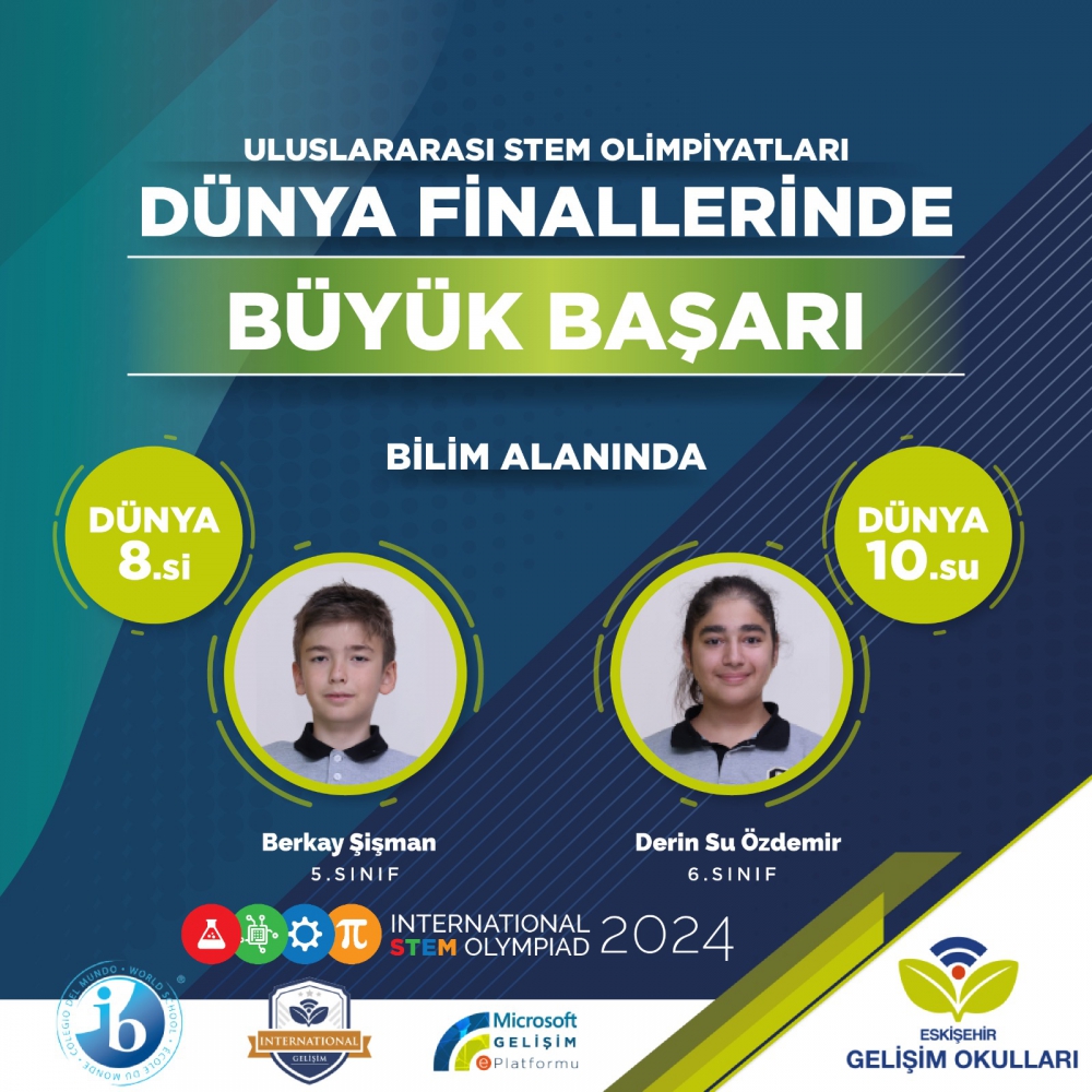 Bilim alanında 5.sınıf öğrencimiz Berkay ŞİŞMAN dünya 8.si, 6.sınıf öğrencimiz Derin Su ÖZDEMİR dünya 10.su olmuştur.