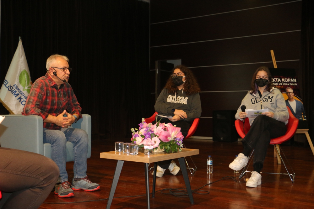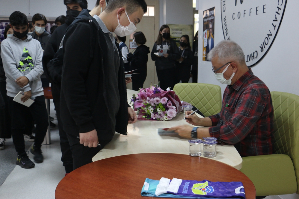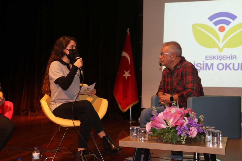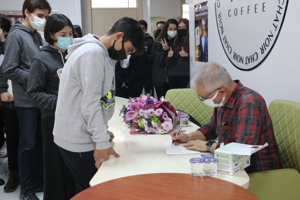 Türk Dili ve Edebiyatı dersleri kapsamında 9,10 ve 11. Sınıflarımızla okuduğumuz ‘’Bana Kuşlar Söyledi’’ kitabının yazarı, aynı zamanda seslendirme sanatçısı ve televizyon programcısı Yekta Kopan’ı okulumuzda misafir ettik. Türk Dili ve Edebiyatı öğretmenlerimizin rehberliğinde, lise öğrencilerimizden Alara Er, Batuhan Erzincanlı, Mert Taşkın ve Ayşenaz Üçer’in moderatörlüğü ile gerçekleştirilen söyleşiye ilgi oldukça yoğundu. Öğrencilerimiz okudukları ‘’Bana Kuşlar Söyledi’’ isimli kitapla ve sanatla ilgili merak ettiklerini de sorma fırsatı yakaladılar. Yazdığı pek çok hikaye kitabıyla çeşitli ödüller alan, aynı zamanda birçok yerli ve yabancı filmin seslendirmesini yapan yazar, öğrencilerimizin ilgisini ve sorularını çok beğendiğini söyleyerek onlara çeşitli tavsiyelerde bulundu. Bu keyifli söyleşi için tüm öğrencilerimiz adına Yekta Kopan’a teşekkürlerimizi sunuyoruz.