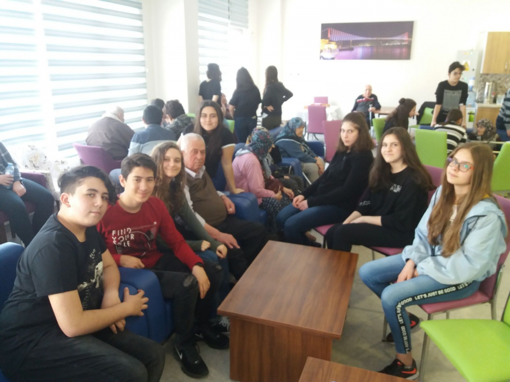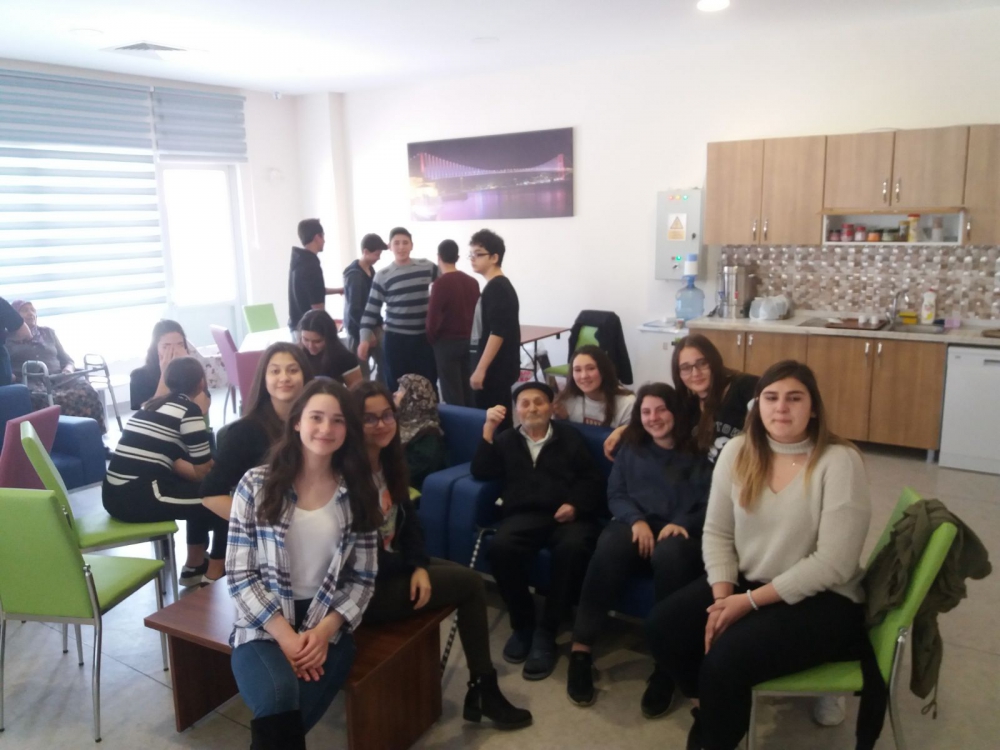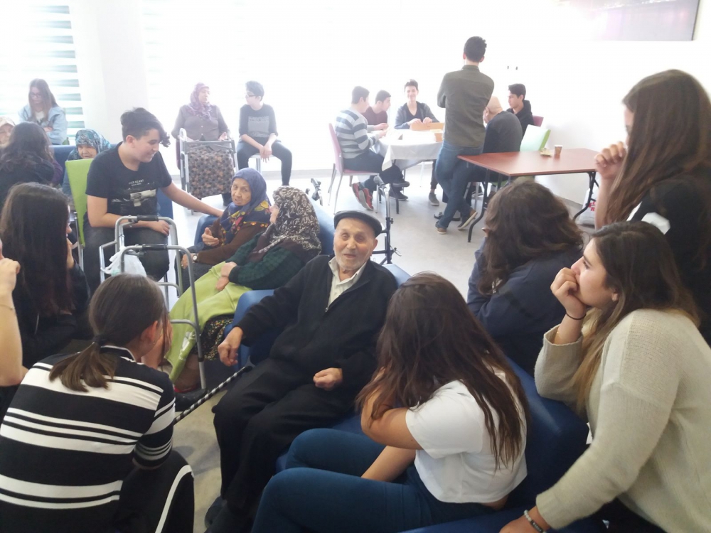 Okulumuz 9. Sınıf öğrencileri ile 28 Mart Çarşamba günü Safiye Gönül Bayar Huzur Evini ziyaret ettik. Öğrencilerimiz hazırlayıp sundukları müzik dinletisinin ardından yaptığımız keyifli sohbetlerle ziyaretimizi tamamladık. Bizi konuk eden değerli huzurevi sakinleri ve Sosyal Hizmet Uzmanı Bülent Yaban’a teşekkür ederiz.